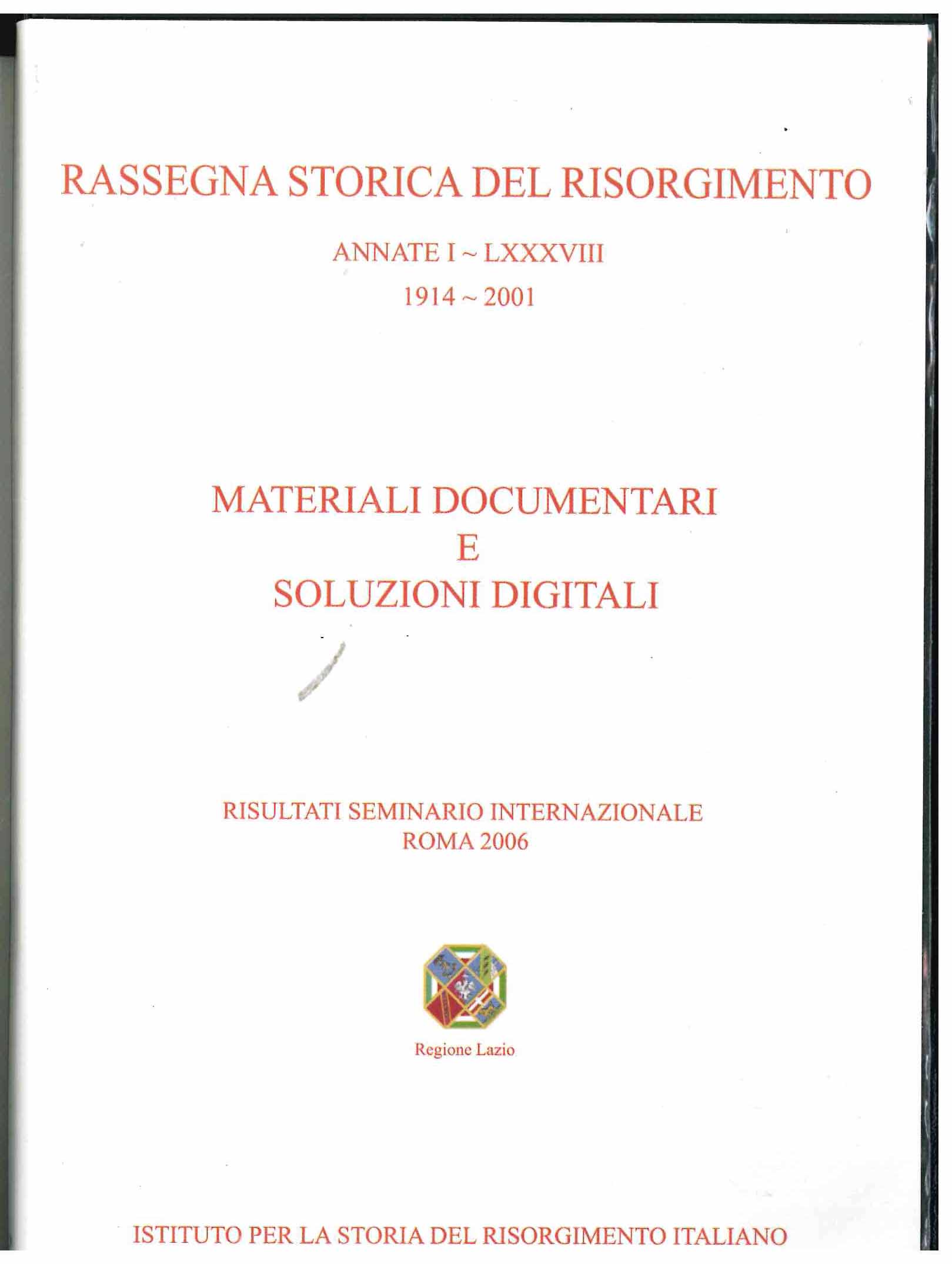 Dvd contenente le annate della Rassegna Storica dal I-LXXXVIII