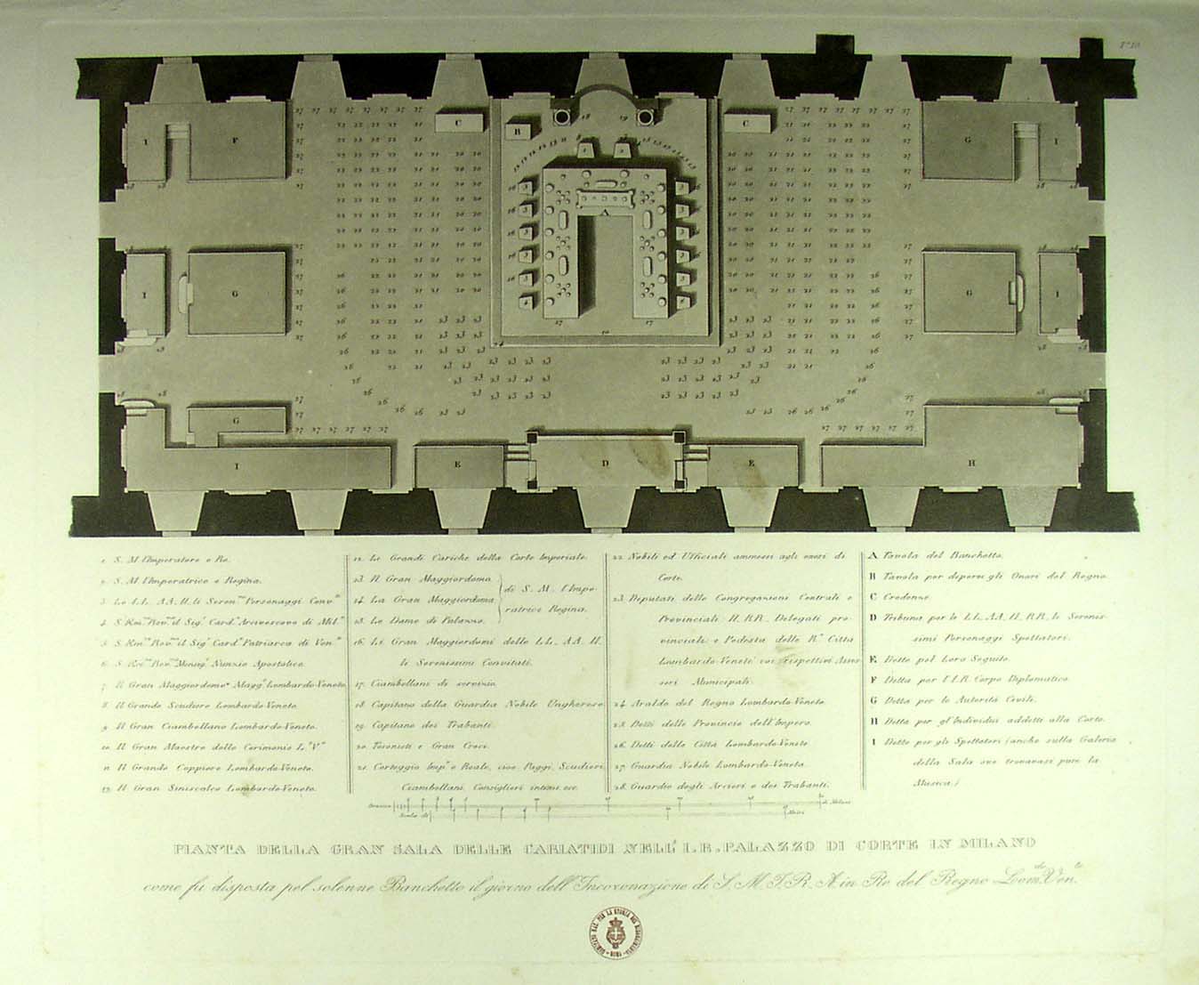 Pianta della gran sala delle Cariatidi nel palazzo di corte a Milano |