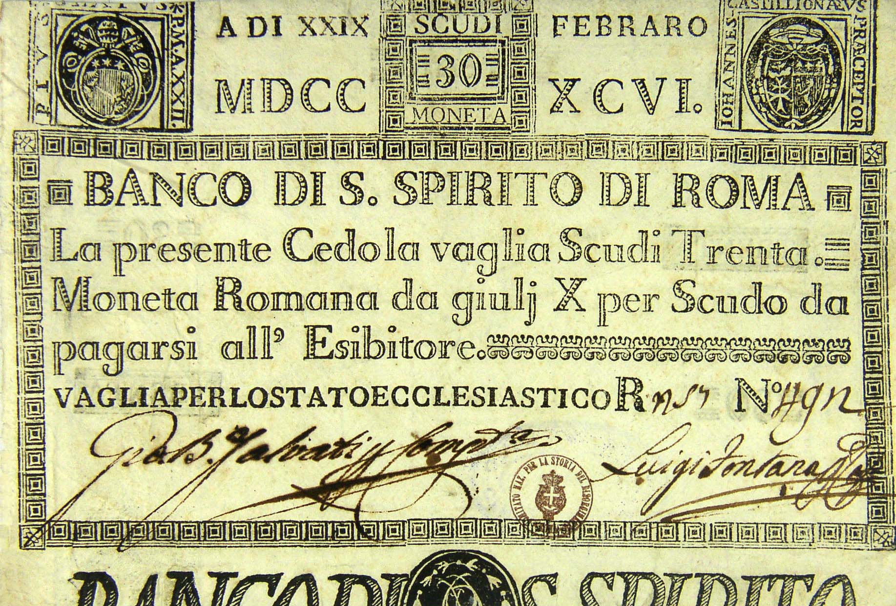 Carta moneta del Banco di Santo Spirito di Roma, 30 Scudi romani