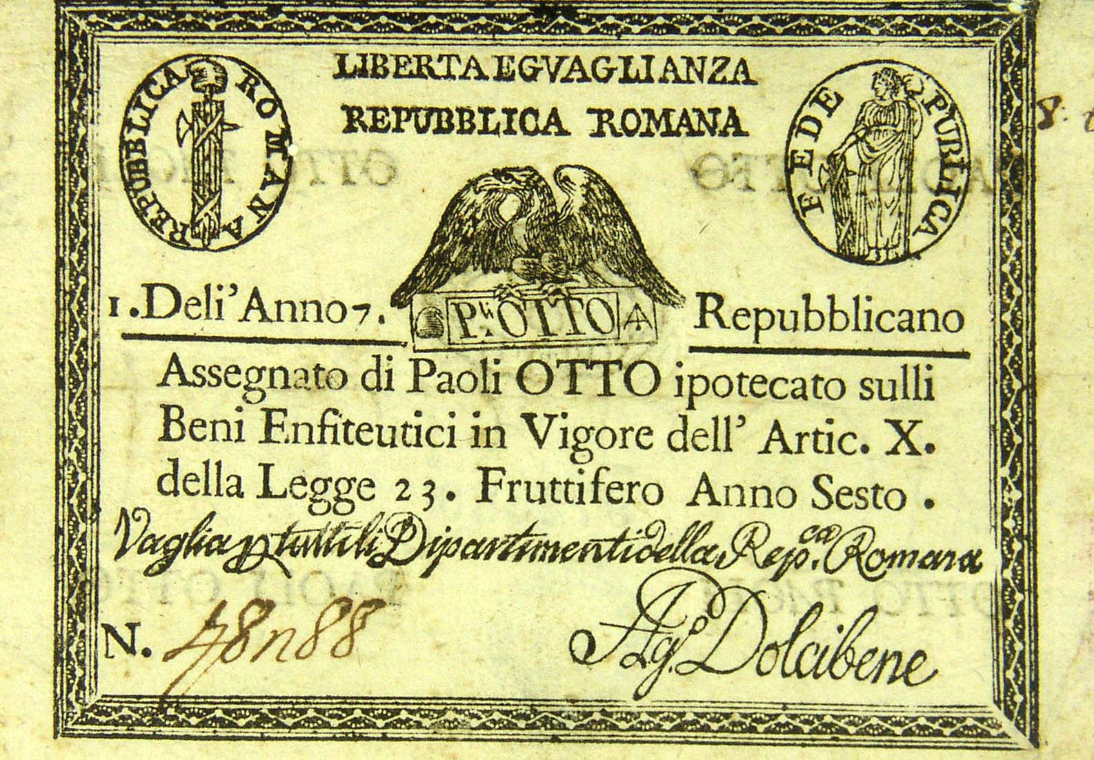 Carta moneta della Repubblica Romana, 8 paoli