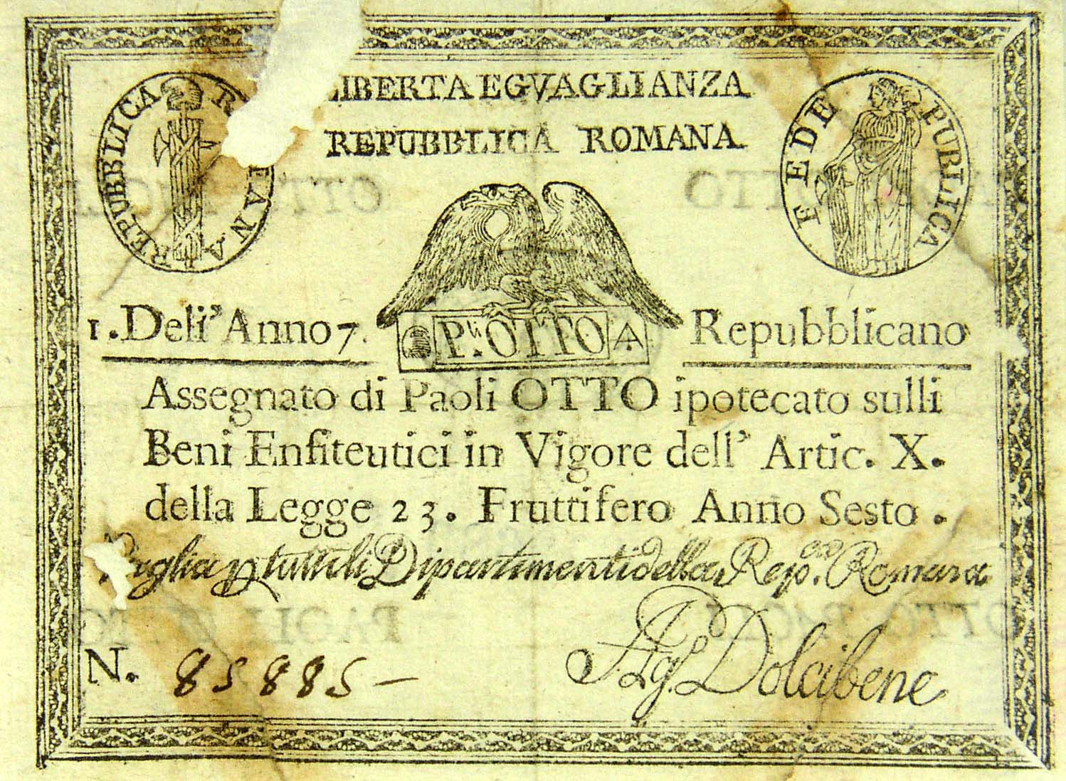 Carta moneta della Repubblica Romana, 8 Paoli