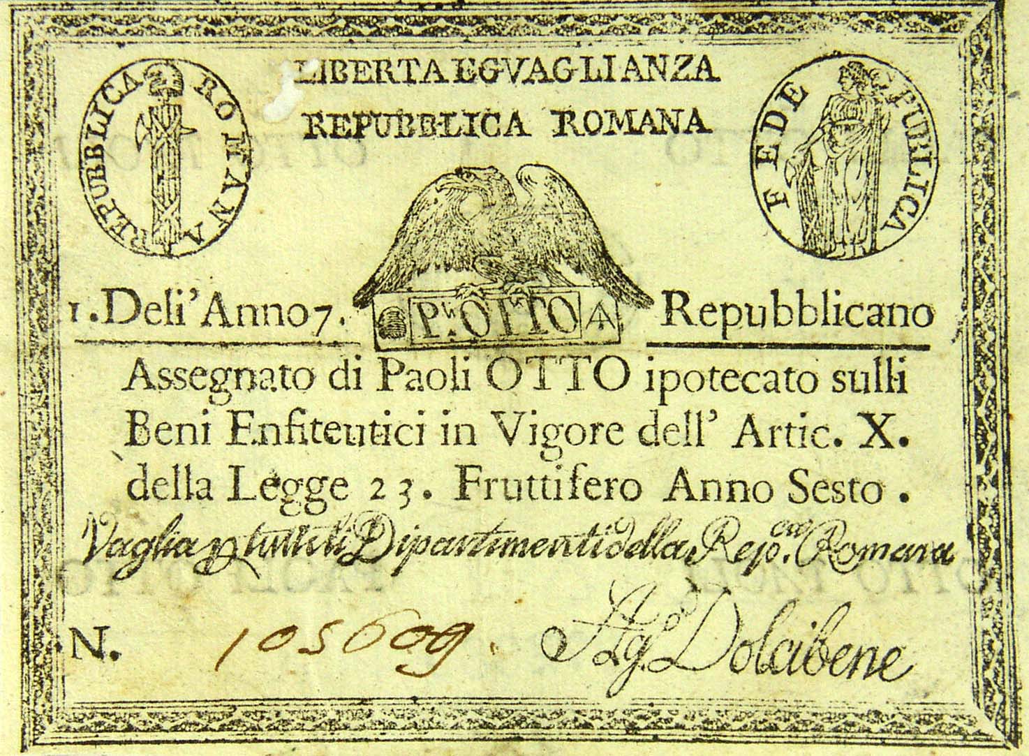 Carta moneta della Repubblica Romana, 8 Paoli |