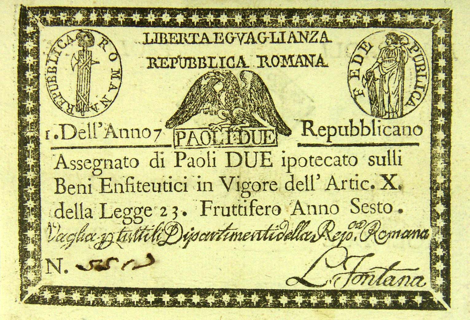 Carta moneta della Repubblica Romana, 2 Paoli