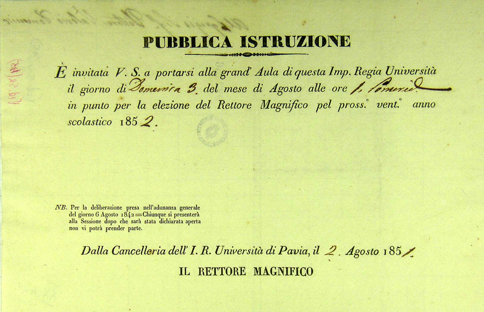 Invito per la elezione del Rettore Magnifico dell´Università di Pavia |