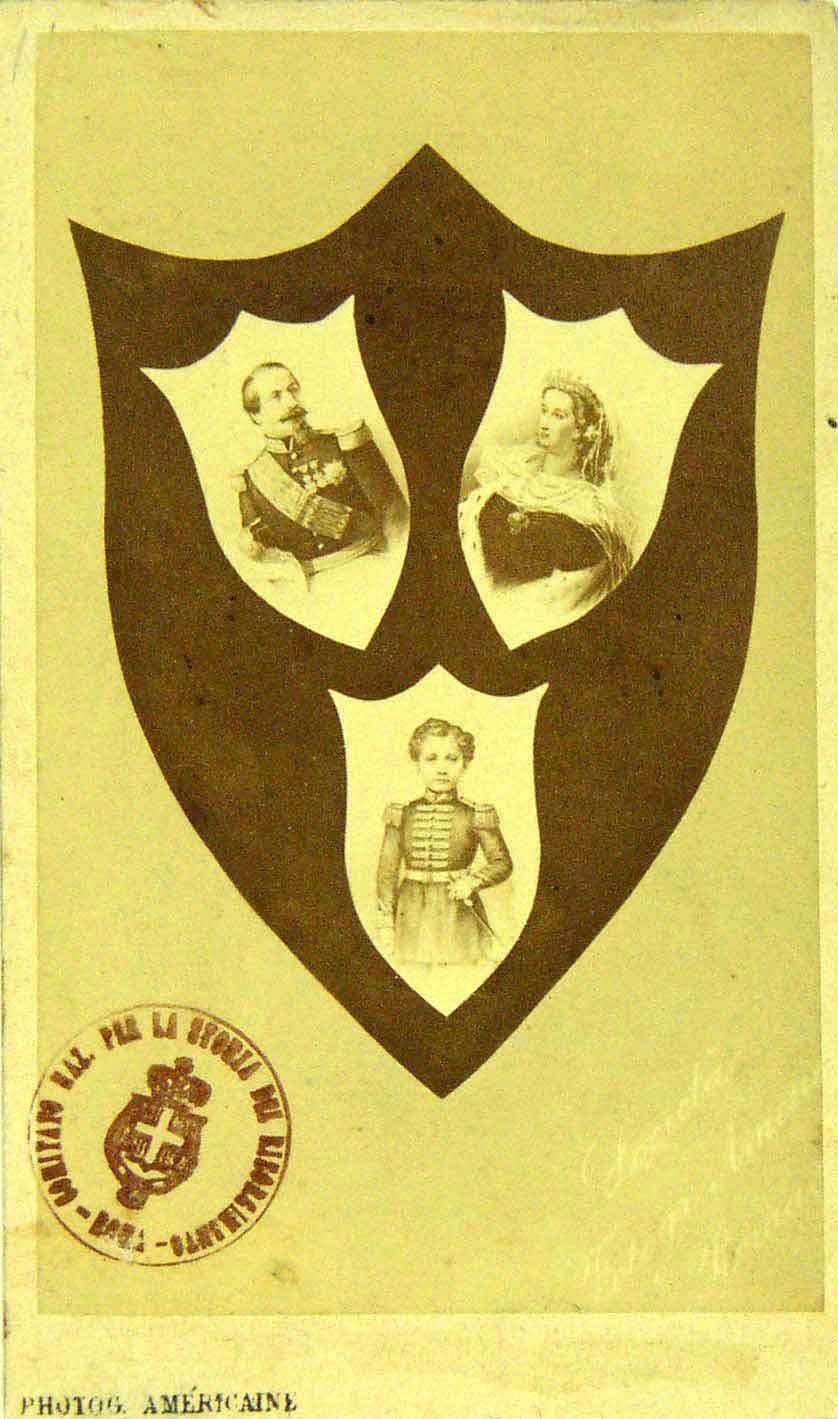 ** La fotografia è stata realizzata inserendo i tre componenti della famiglia all´interno di uno scudo, tutti e tre a loro volta inseriti all´interno di uno scudo più grande - |