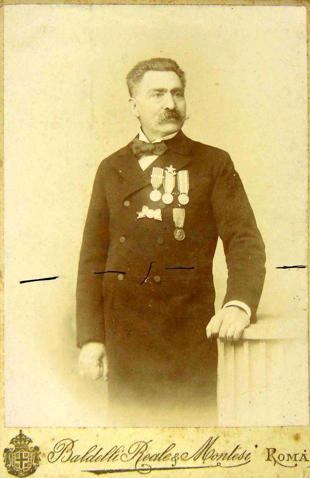 ** Veterano Guerre Risorgimentali 1848-1870. La fotografia riporta una serie di linee all´altezza del busto del soggetto, probabilmente sono a indicare il taglio per la realizzazione di un formato più piccolo - |