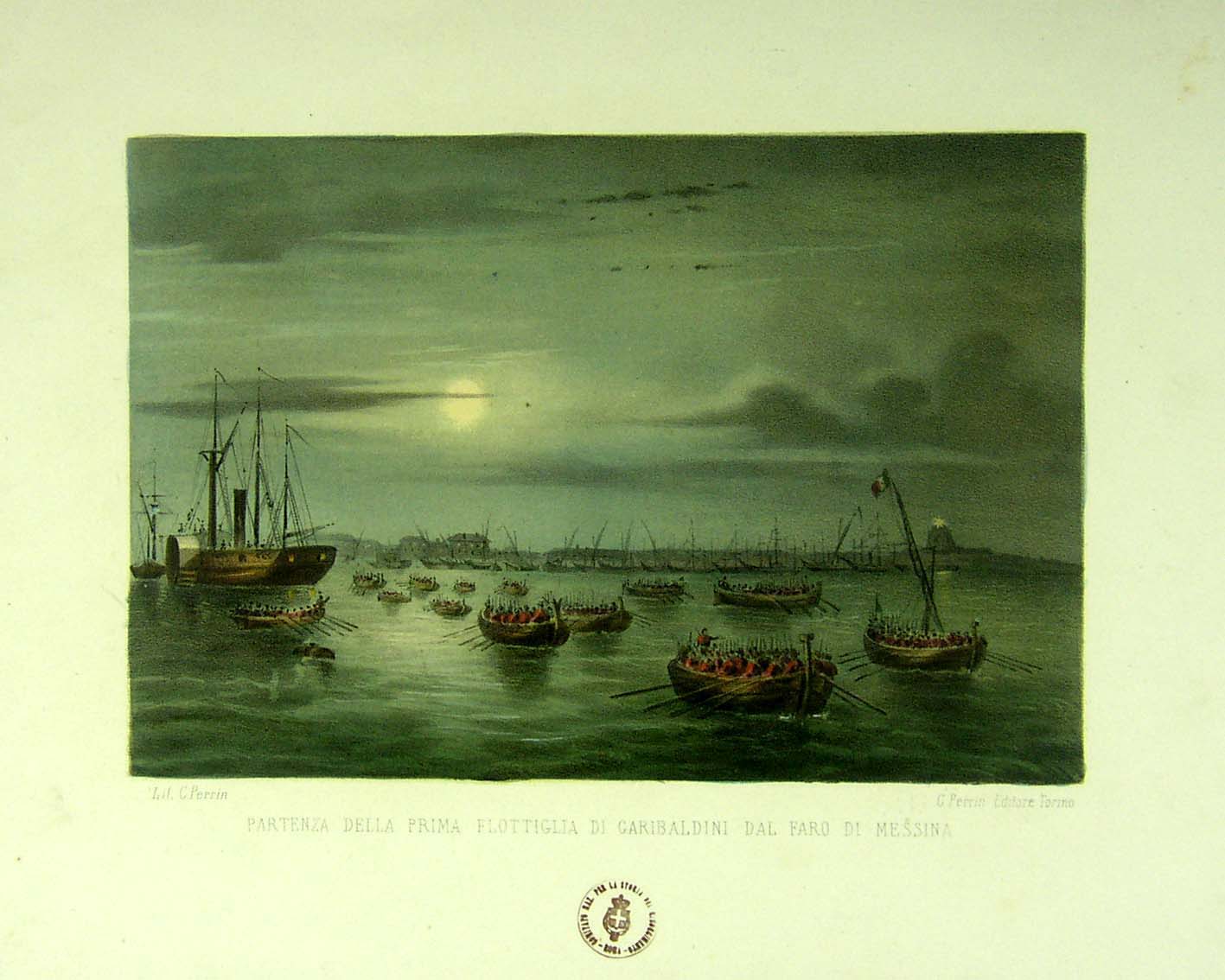 Partenza della prima flottiglia di garibaldini dal faro di Messina |