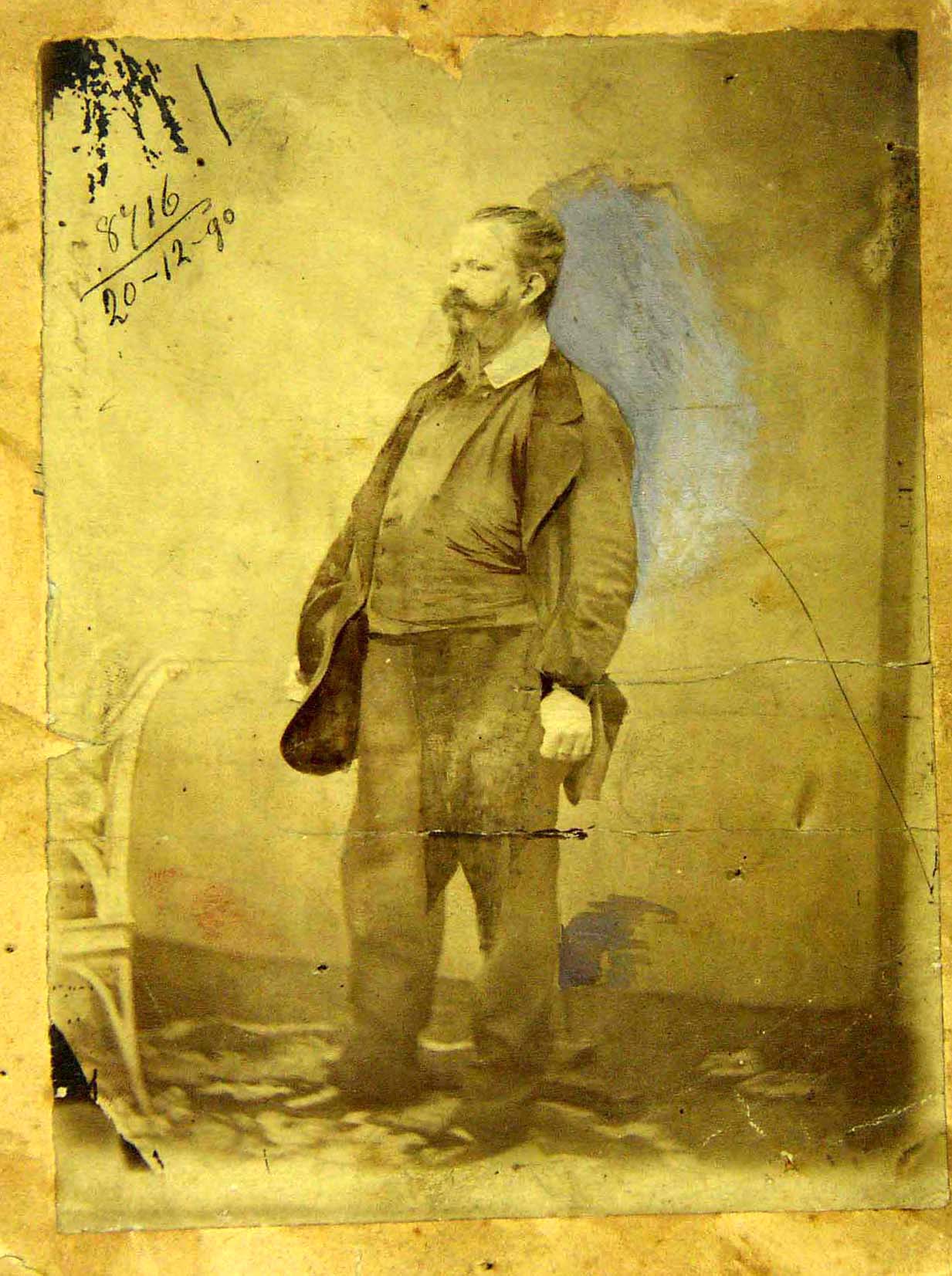 ** Il re è quasi completamente ritoccato a mano nell´abito, nei capelli e nei baffi, anche lo sfondo è colorato di grigio per stagliare la figura per essere rifotografata, il colletto è lumeggiato a biacca - |