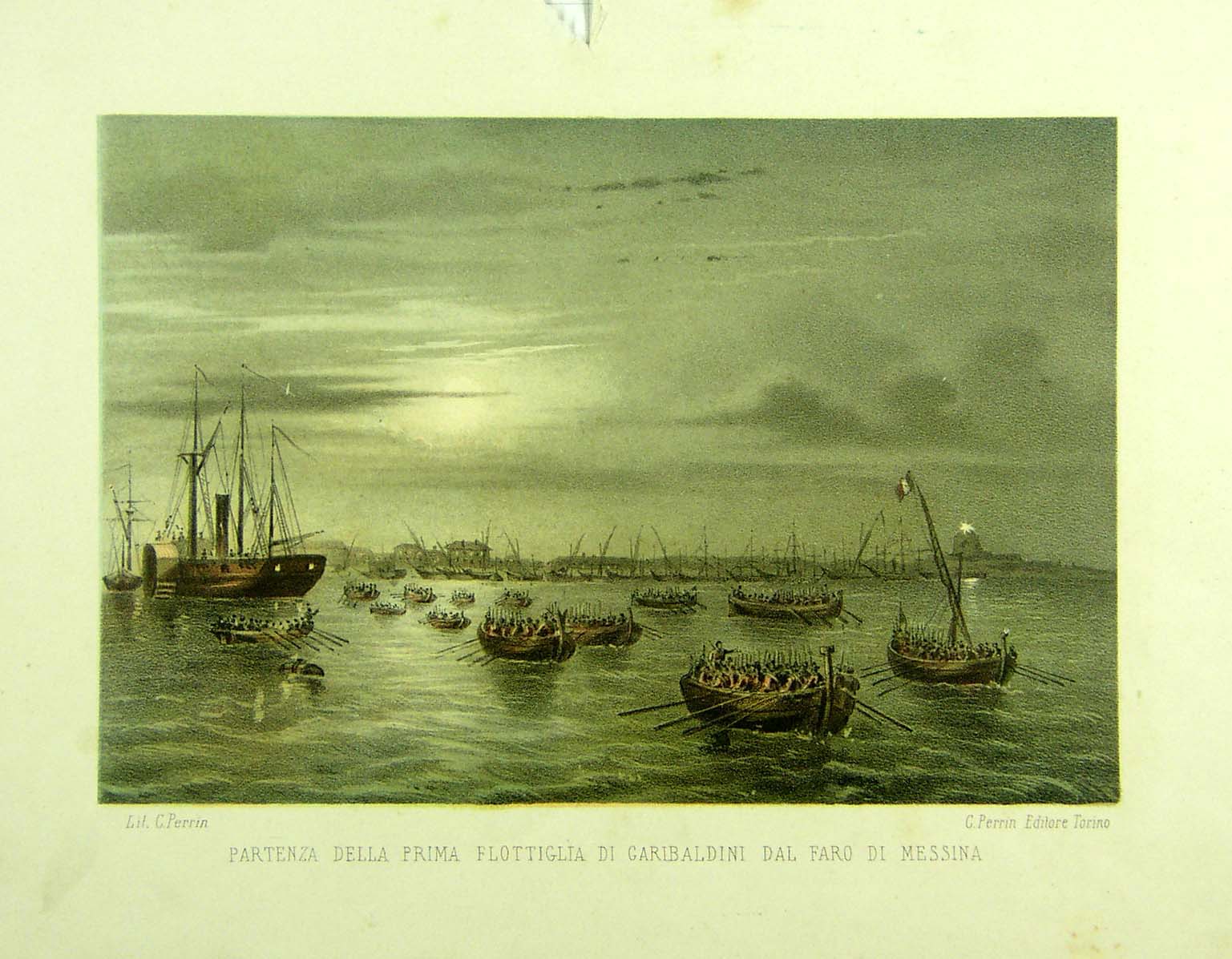 Partenza della prima flottiglia di garibaldini dal faro di Messina