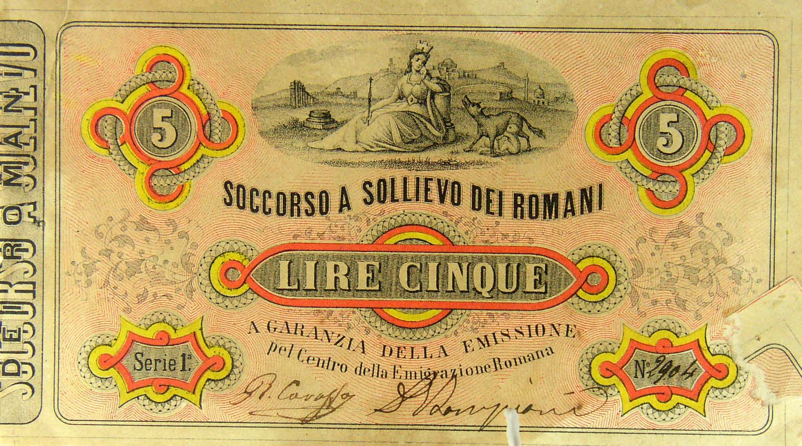 Parte di serie: ´Carta moneta´ da 8b(91) a 8b(97) Acquerellata a mano Sul retro un proclama a favore dell´unità - |