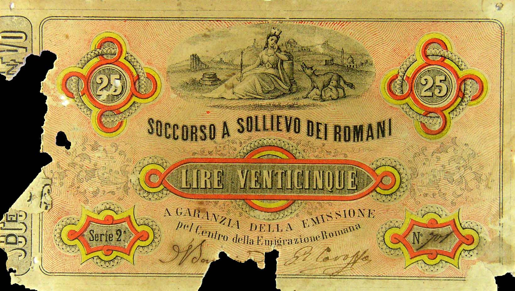 Parte di serie: ´Carta moneta´ da 8b(91) a 8b(97) Acquerellata a mano Sul retro un proclama a favore dell´unità - |