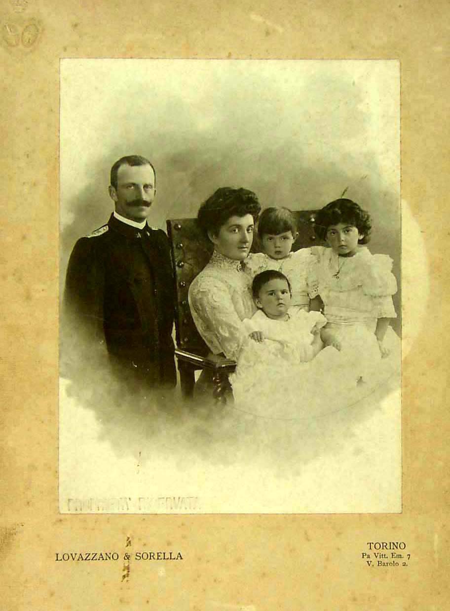 Vittorio Emanuele III di Savoia con la moglie Elena e i figli Jolanda, Mafalda e Umberto