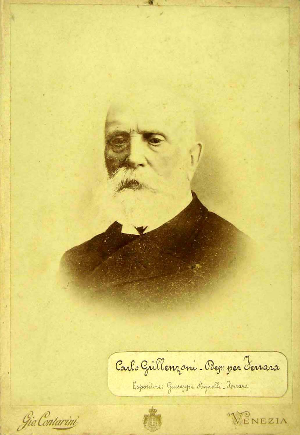 a) Carlo Grillenzoni, Deputato per Ferrara. Espositore: Giuseppe Agnelli, Ferrara [dicitura riportata su cartoncino incollato sulla foto]; b) Carlo Grillenzoni di Ferrara, Giuseppe Agnelli 365/1539 [annotazione a matita] |