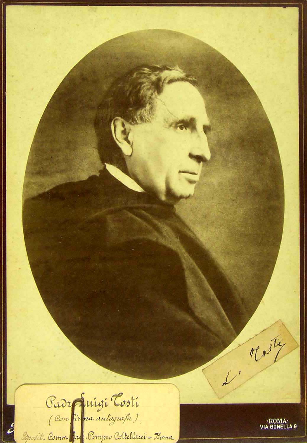 a) Padre Luigi Tosti (con firma autografa) Espositore Commendatore Architetto Pompeo Castellacci, Roma [dicitura scritta su un cartoncino e applicata ala foto con una attaches; b) Luigi Tosti |