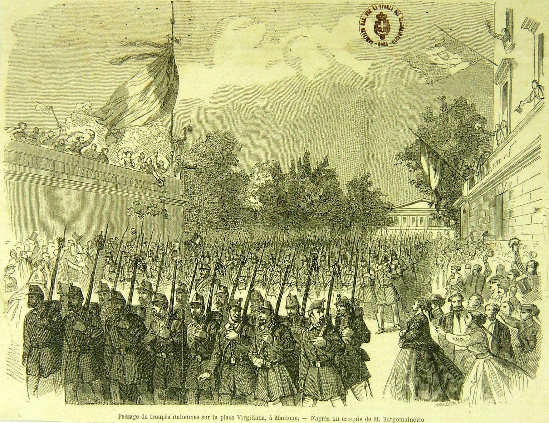 Passage de troupes italiennes sur la place Virgiliana ą Mantoue