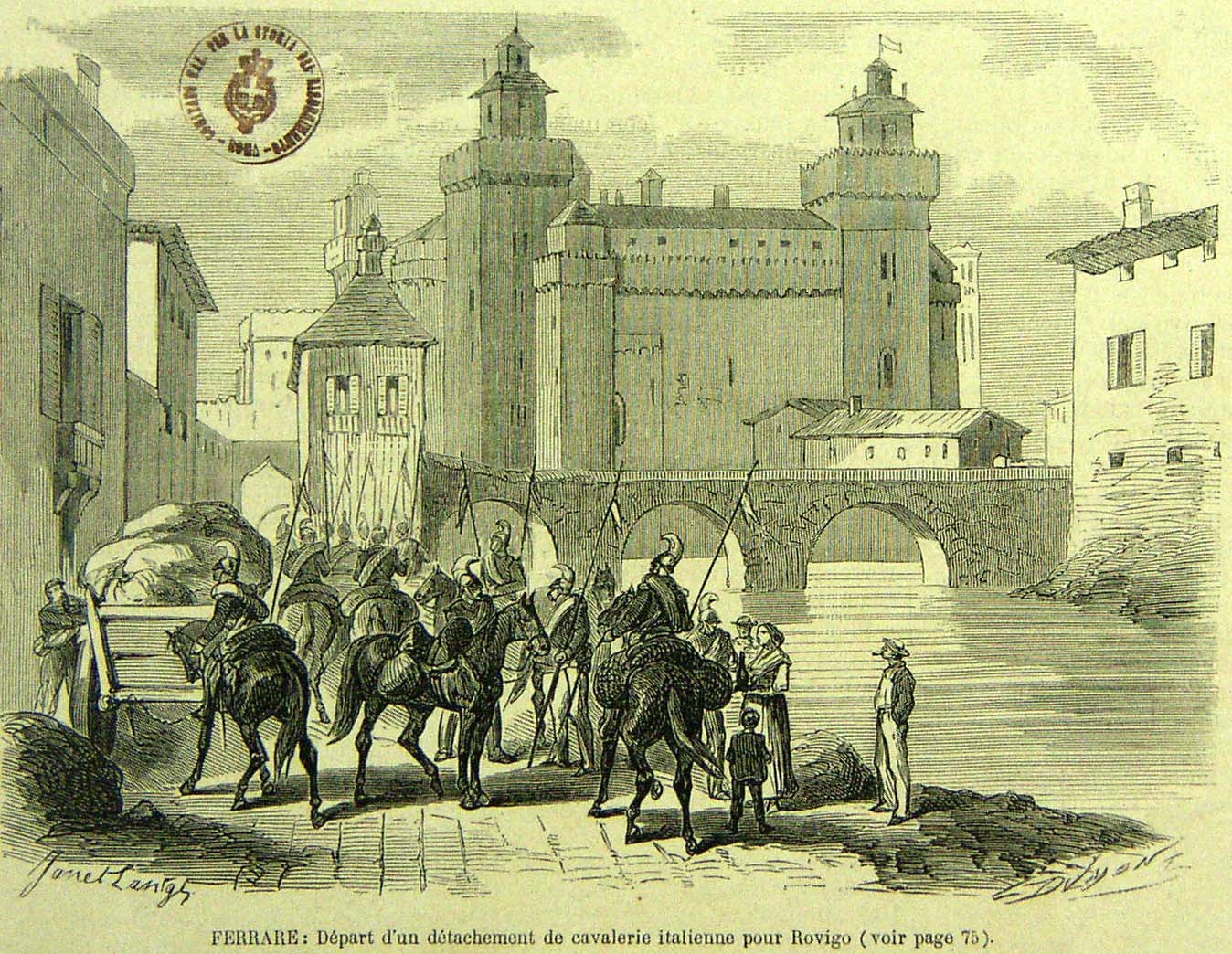 Ferrare: depart d´un dètachement de cavalerie italienne pour Rovigo |