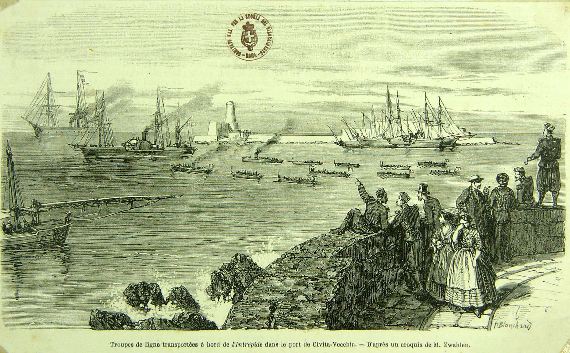 Troupes de ligne transportčes a bord de l´Intrepide dans le port de Civitavecchia |