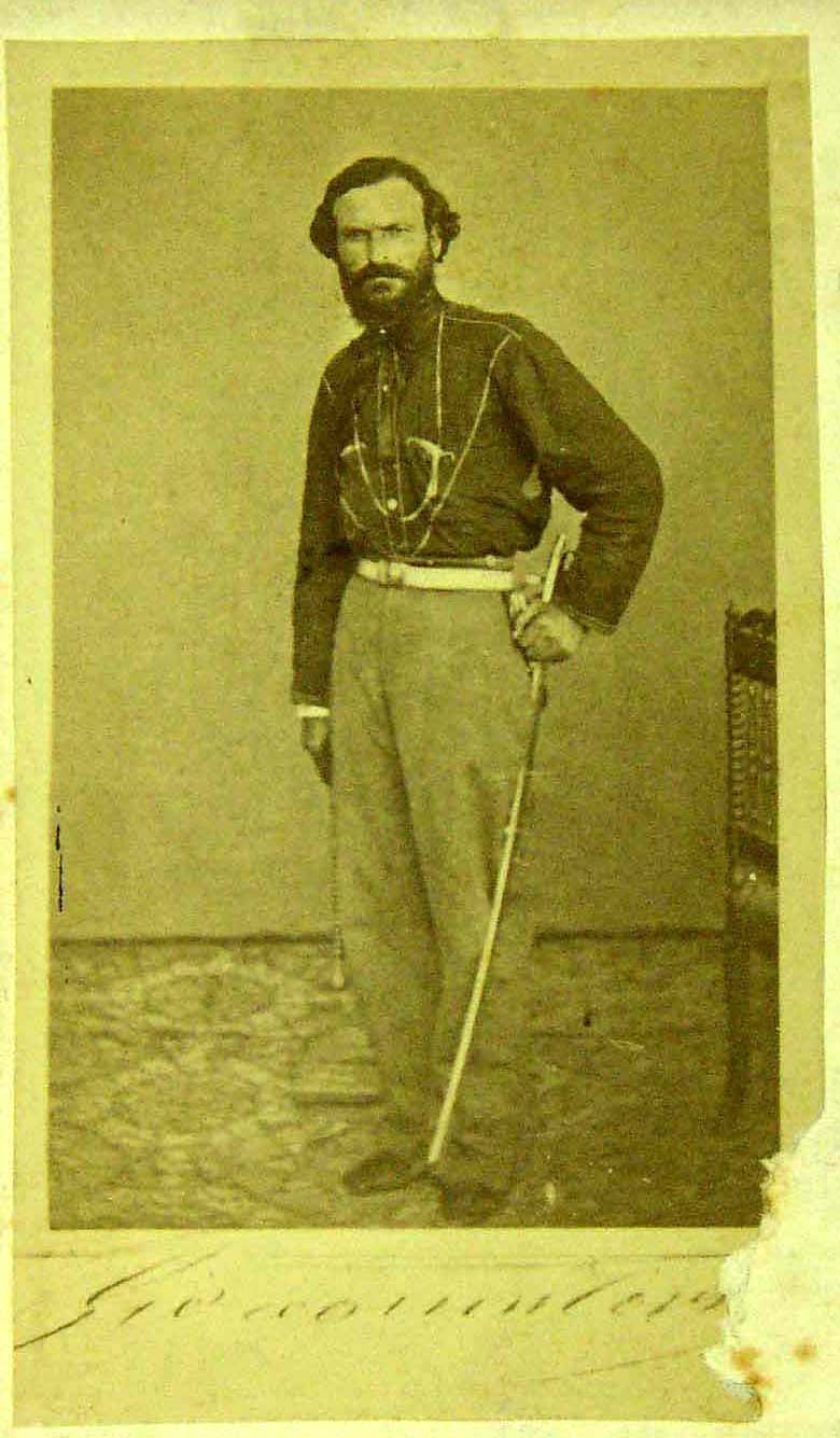 ** Nel verso č incollato un ritaglio a stampa con biografia di Giovanni Corrao. Corrao indossa giubba e kepě rossi. - |