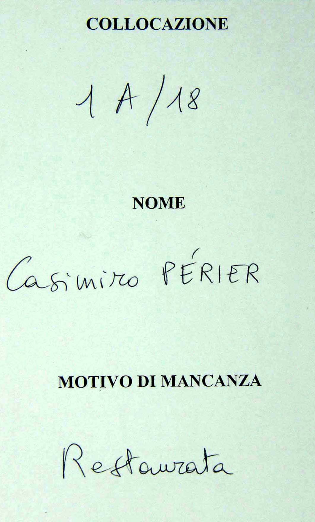 a) Périer Casimir (1773-1832); b) Ridotta di 1 quarto circa 14804 [annotazione a matita] |