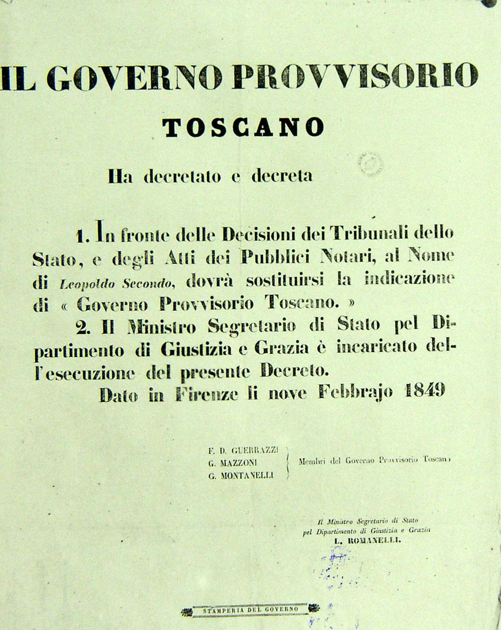 Decreto del Governo Provvisorio Toscano il giorno 9 Febbraio 1849