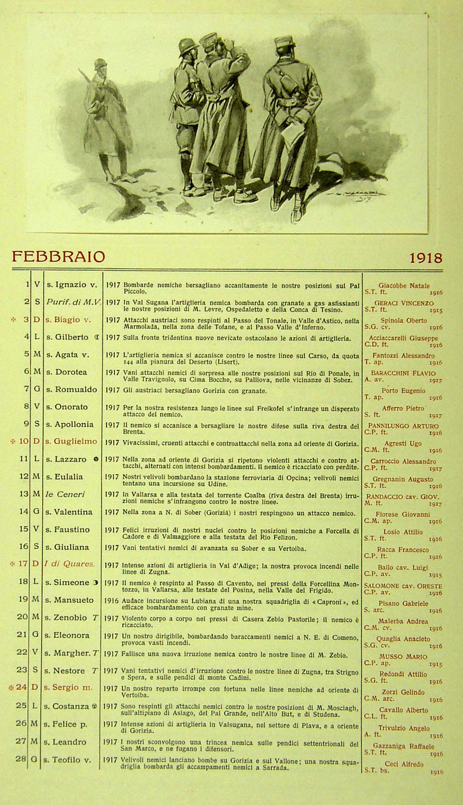 Calendario storico con illustrazioni di Vaccari Alfredo