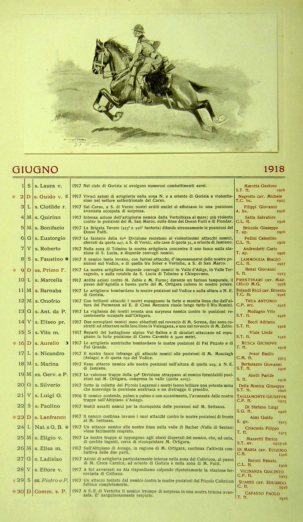 Calendario storico con illustrazioni di Vaccari Alfredo