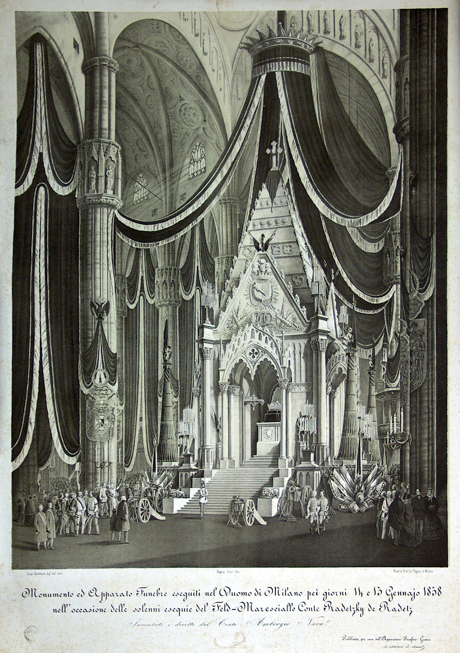 Monumento ed apparato funebre eseguiti nel Duomo di Milano pei giorni 14 e 15 gennaio 1858 nell´occasione delle solenni esequie del Feld-Maresciallo Conte Radetzky de Radetz. Inventati e diretti dal conte Ambrogio Nava |