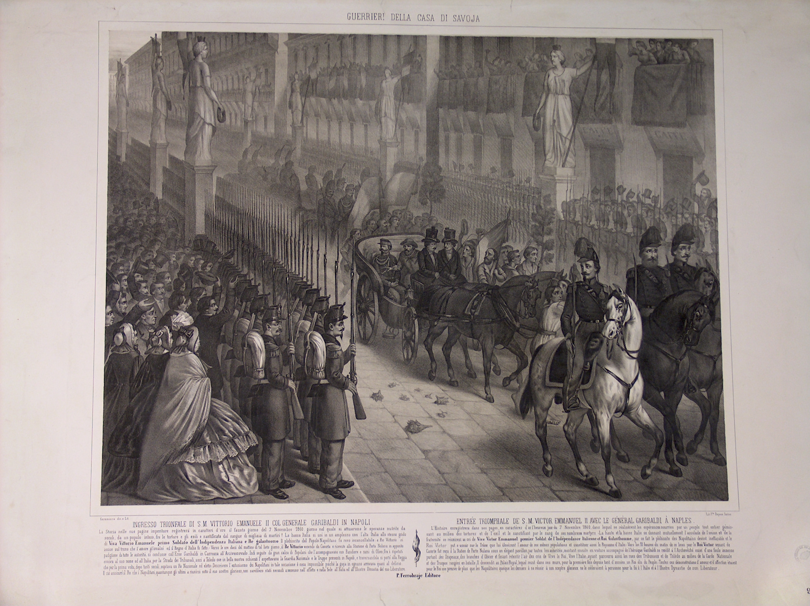 Guerrieri della Casa di Savoja. Ingresso trionfale di S. M. Vittorio Emanuele II col generale Garibaldi in Napoli