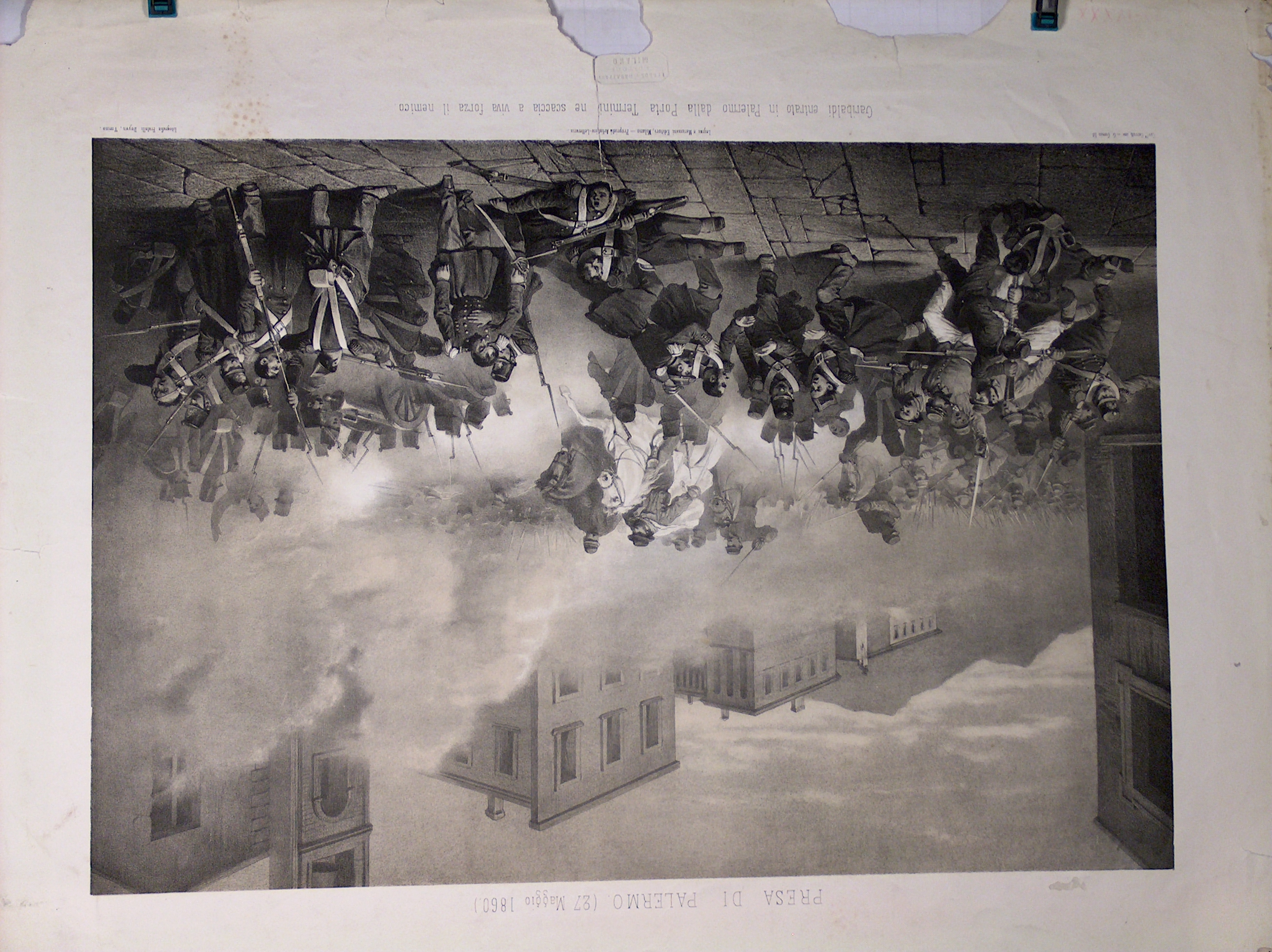 Presa di Palermo (27 maggio 1860). Garibaldi entrato in Palermo dalla Porta Termini ne scaccia a viva forza il nemico