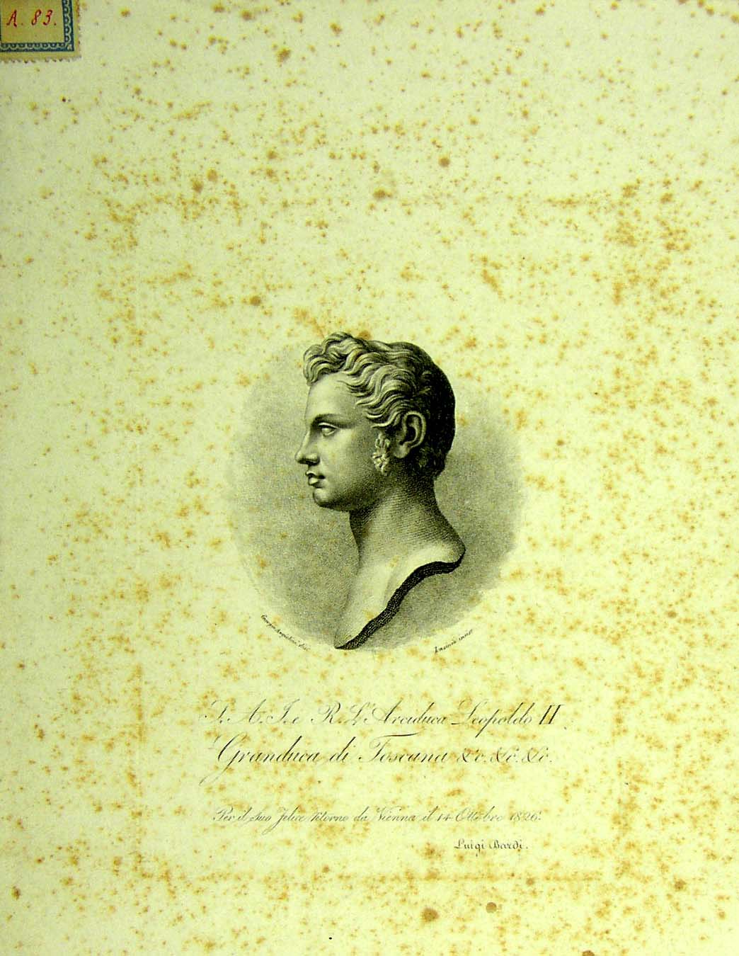Sua Altezza Imperiale e Reale lŽArciduca Leopoldo II Granduca di Toscana. Per il suo felice ritorno da Vienna il 14 ottobre 1826. Luigi Bardi