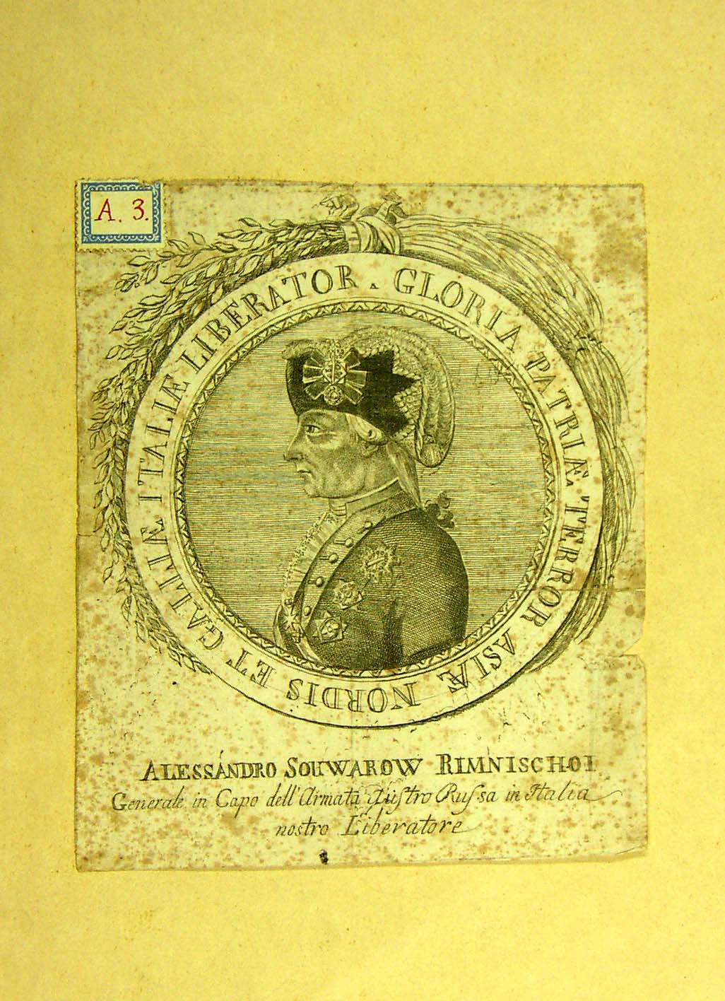 Alessandro Souwarow Rimnischoi. Generale in Capo dell´Armata Austro Russa in Italia nostro liberatore |