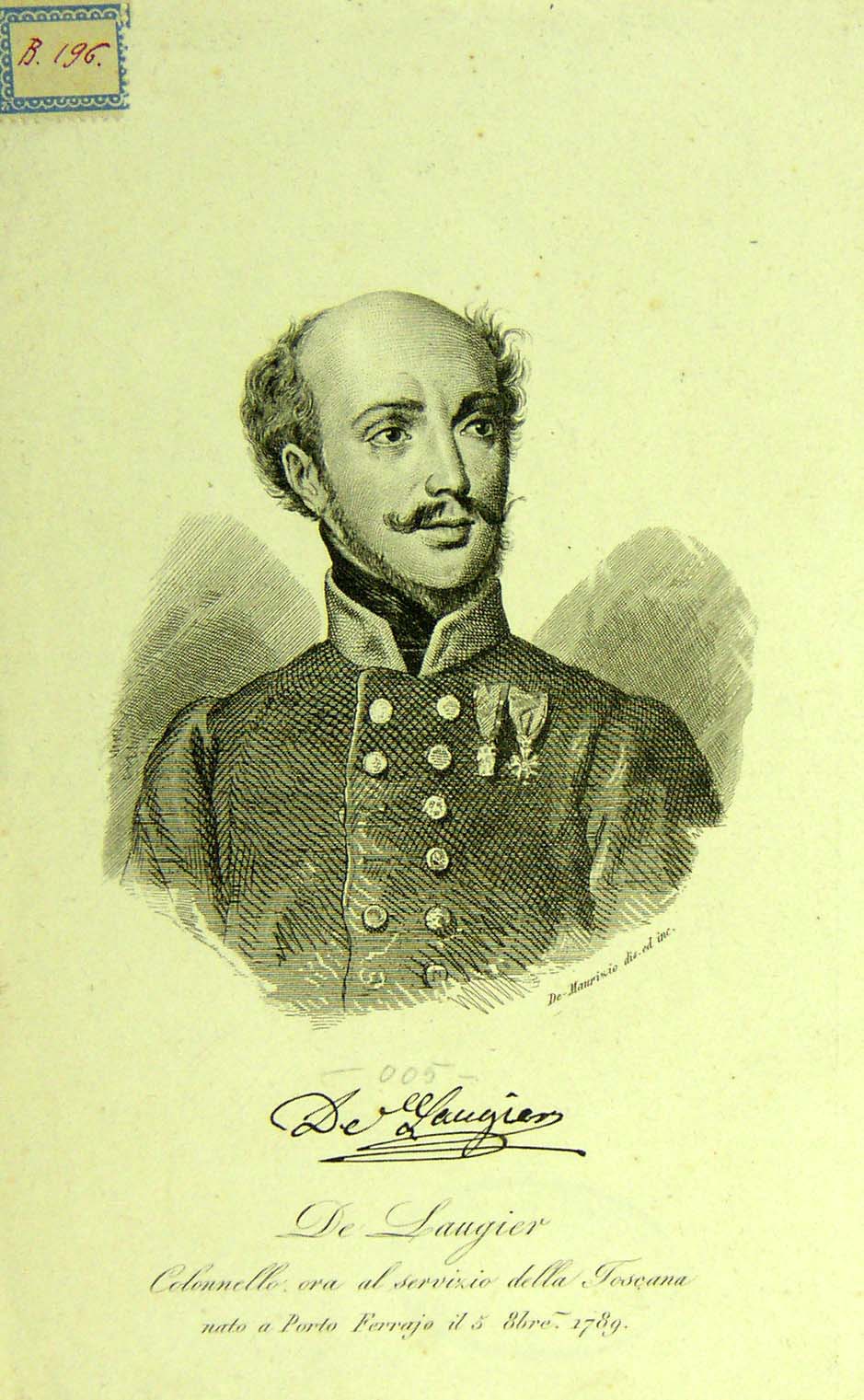 De Laugier. Colonnello, ora al servizio della Toscana, nato a Porto Ferrajo il 5 ottobre 1789 |