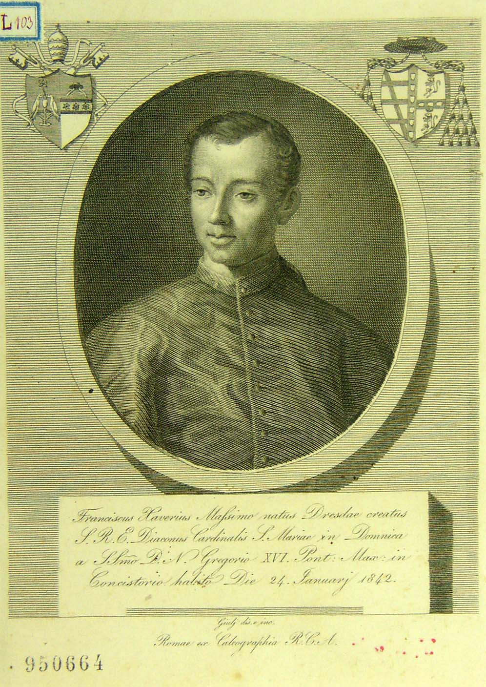 Franciscus Xaverius Massimo natus Dresda creatus S.R.E. Diaconus Cardinalis S. Mariae in Domnica