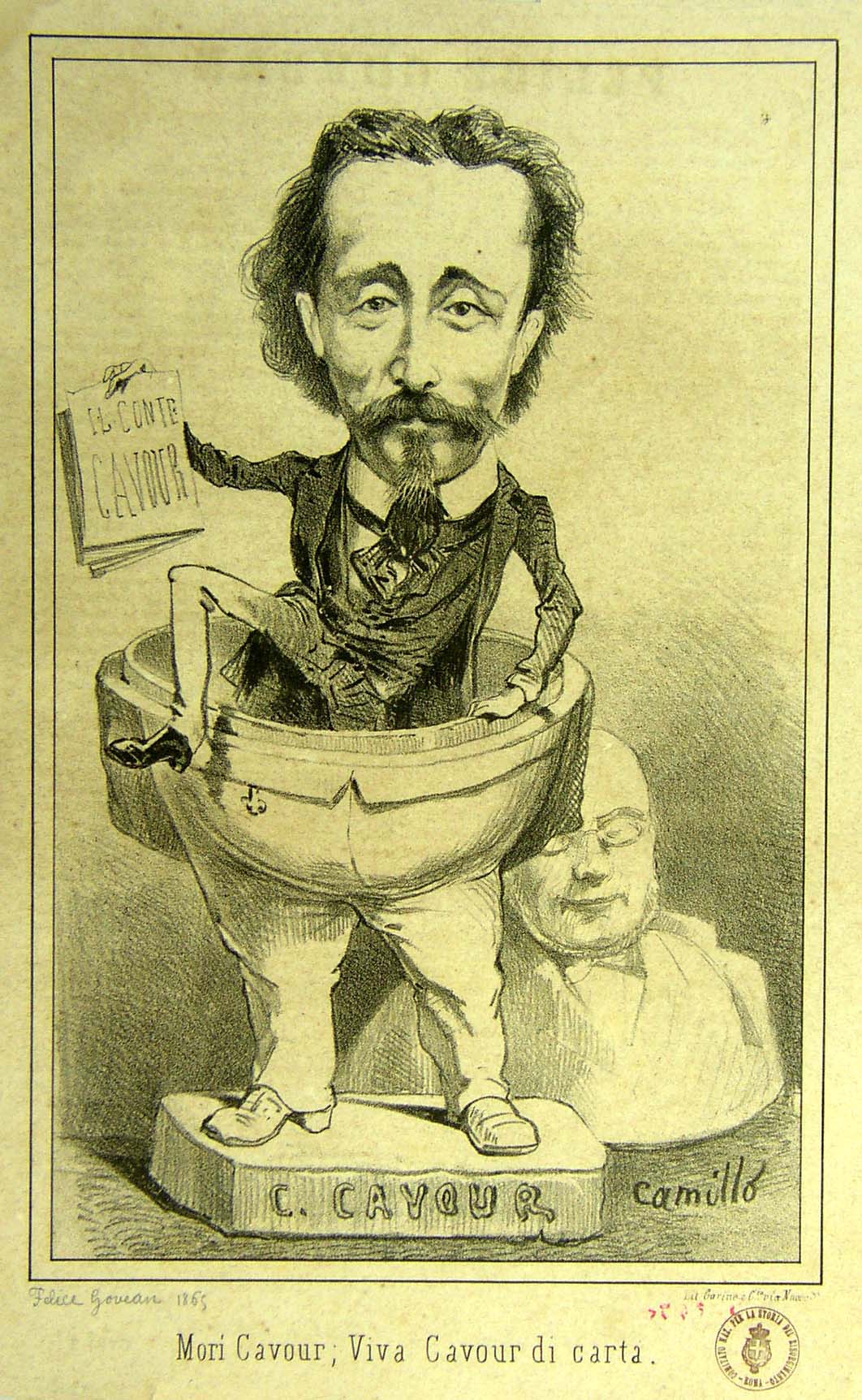 a) Moŕ Cavour; Viva Cavour di carta (sul recto); b) Felice Govean (sul verso) |