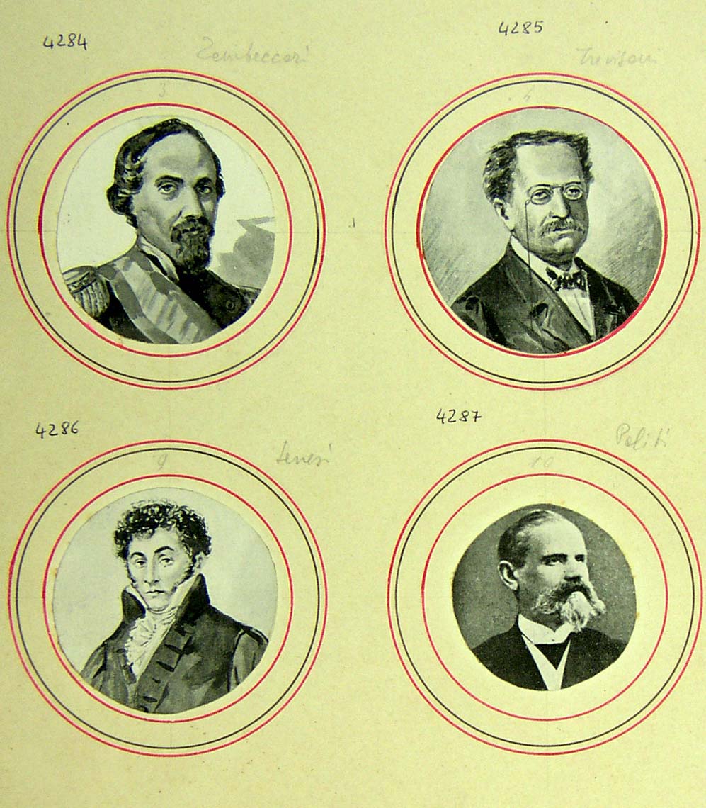 Ritagliata in tondo. Parte di una composizione. Iscrizione posteriore a matita |