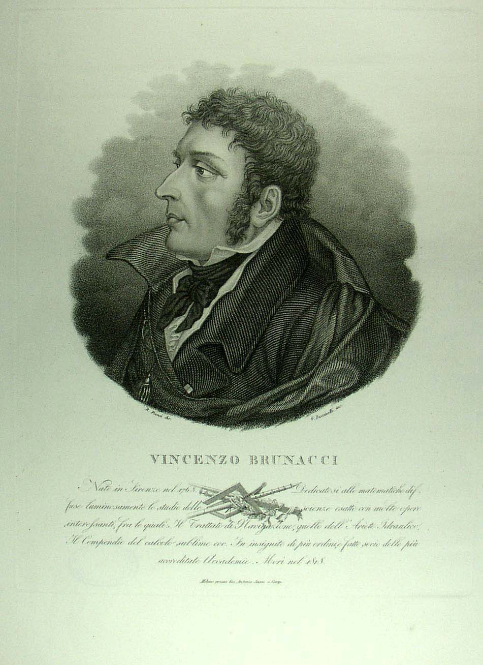 Recto: Vincenzo Brunacci, nato in Firenze nel 1768. Dedicatosi alle matematiche diffuse luminosamente lo studio delle scienze esatte con molte opere interessanti, fra le quali: Il trattato di navigazione, quello dell'ariete idraulico, il compendio del calcolo sublime ecc. Fu insignito di più ordini, e fatto socio delle più accreditate accademie. Morì nel 1818. |