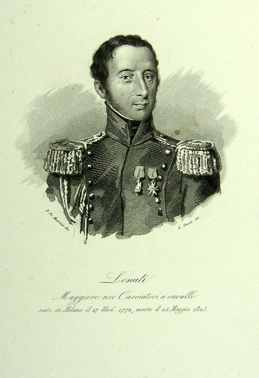 Lonati, Maggiore nei Cacciatori a cavallo, nato in Milano il 27 ottobre 1772, morto il 25 maggio 1825 |