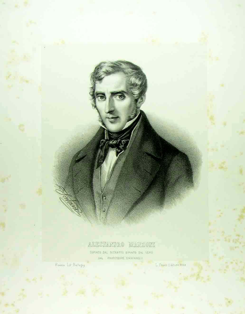 Alessandro Manzoni. Copiato da ritratto dipinto dal vero dal professore Cianfanelli |