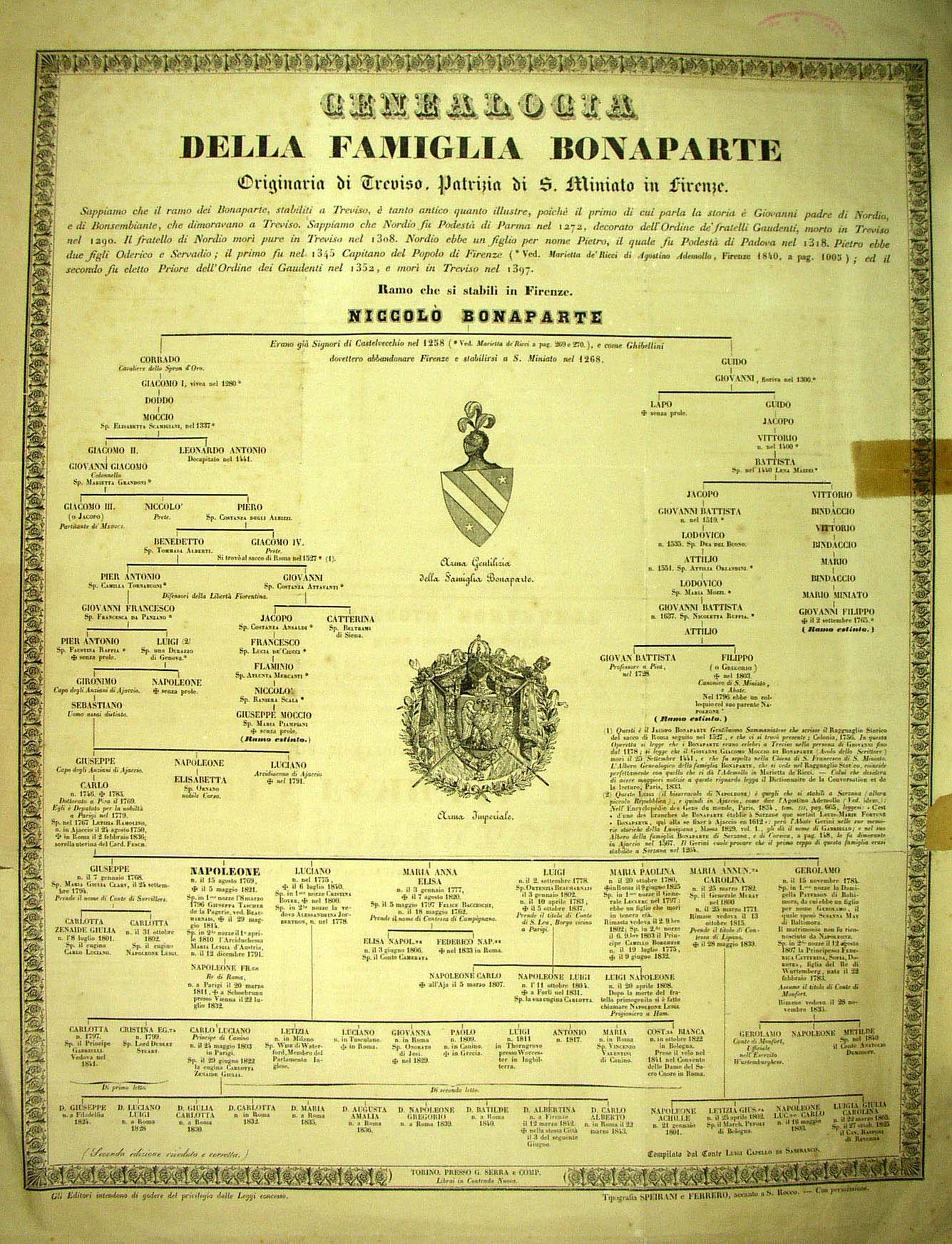 Genealogia della Famiglia Bonaparte. Originaria di Treviso, Patrizia di S. Miniato in Firenze |