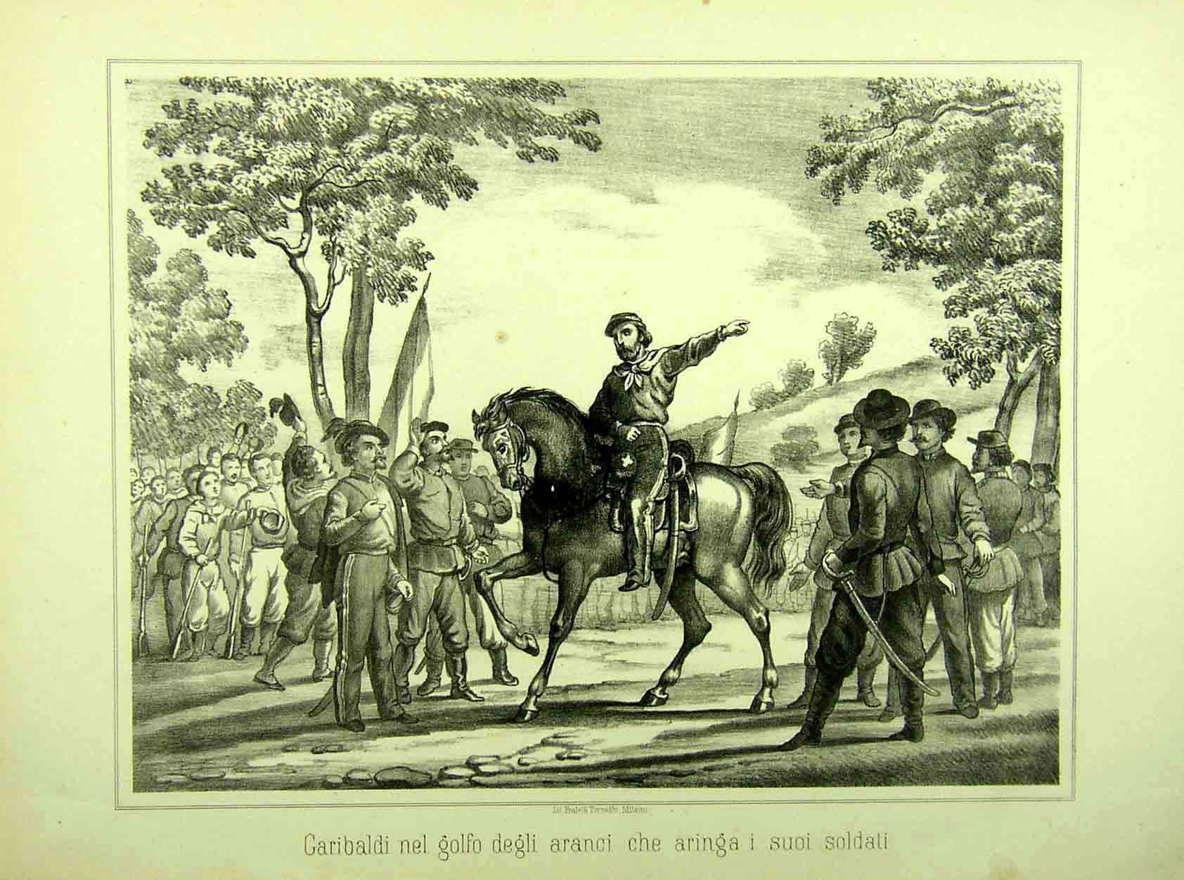 Garibaldi nel Golfo degli Aranci che arringa i suoi soldati |