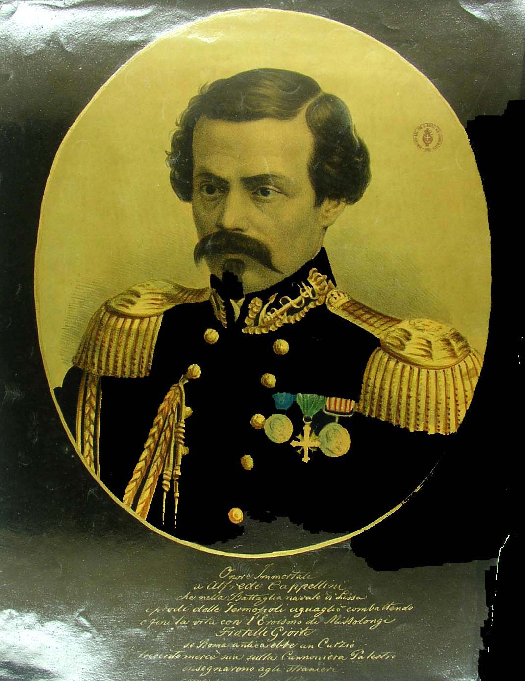 Onore Immortale a Alfredo Cappellini che nella Battaglia navale di Lissa i prodi delle Termopoli eguagliò [...] |