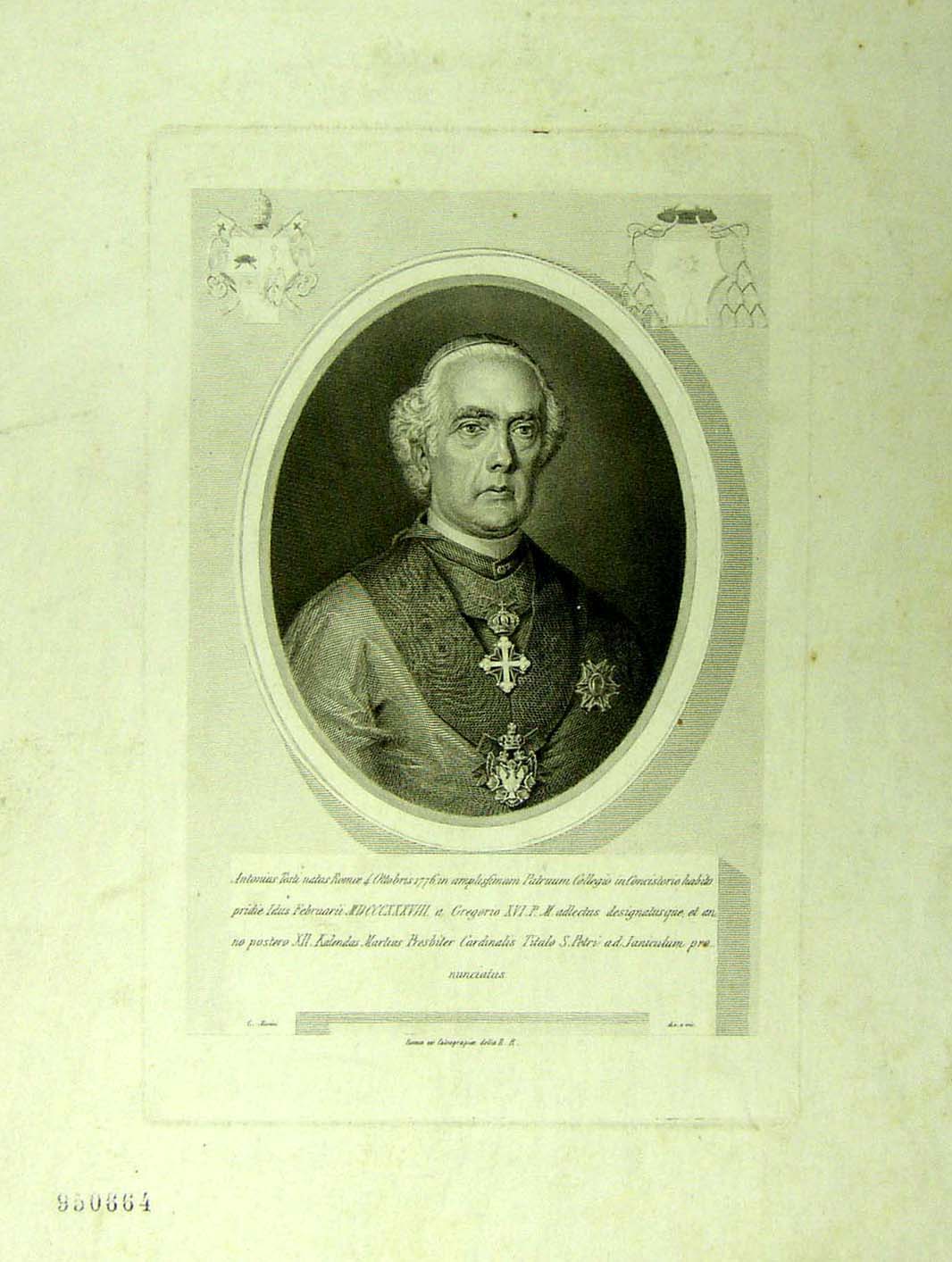 Antonius Tosti natus Romae 4 Ottobris 1776 [...] Presbiter Cardinalis S. Petri ad Janiculum [...] |