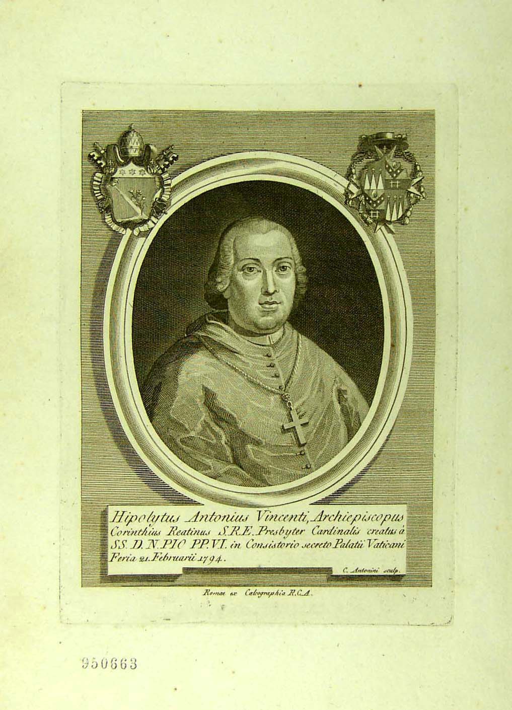 Hipolytus Antonius Vincenti, [...] S.R.E. Presbyter Cardinalis [...] |