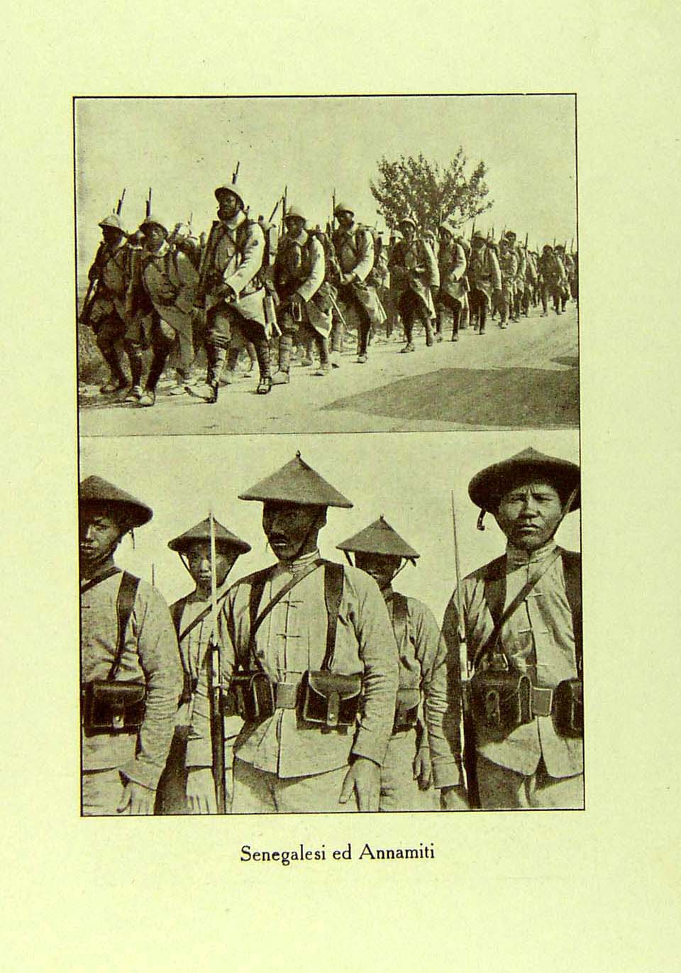 Senegalesi ed Annamiti. Sul verso: I generali francesi Foch Fayolle