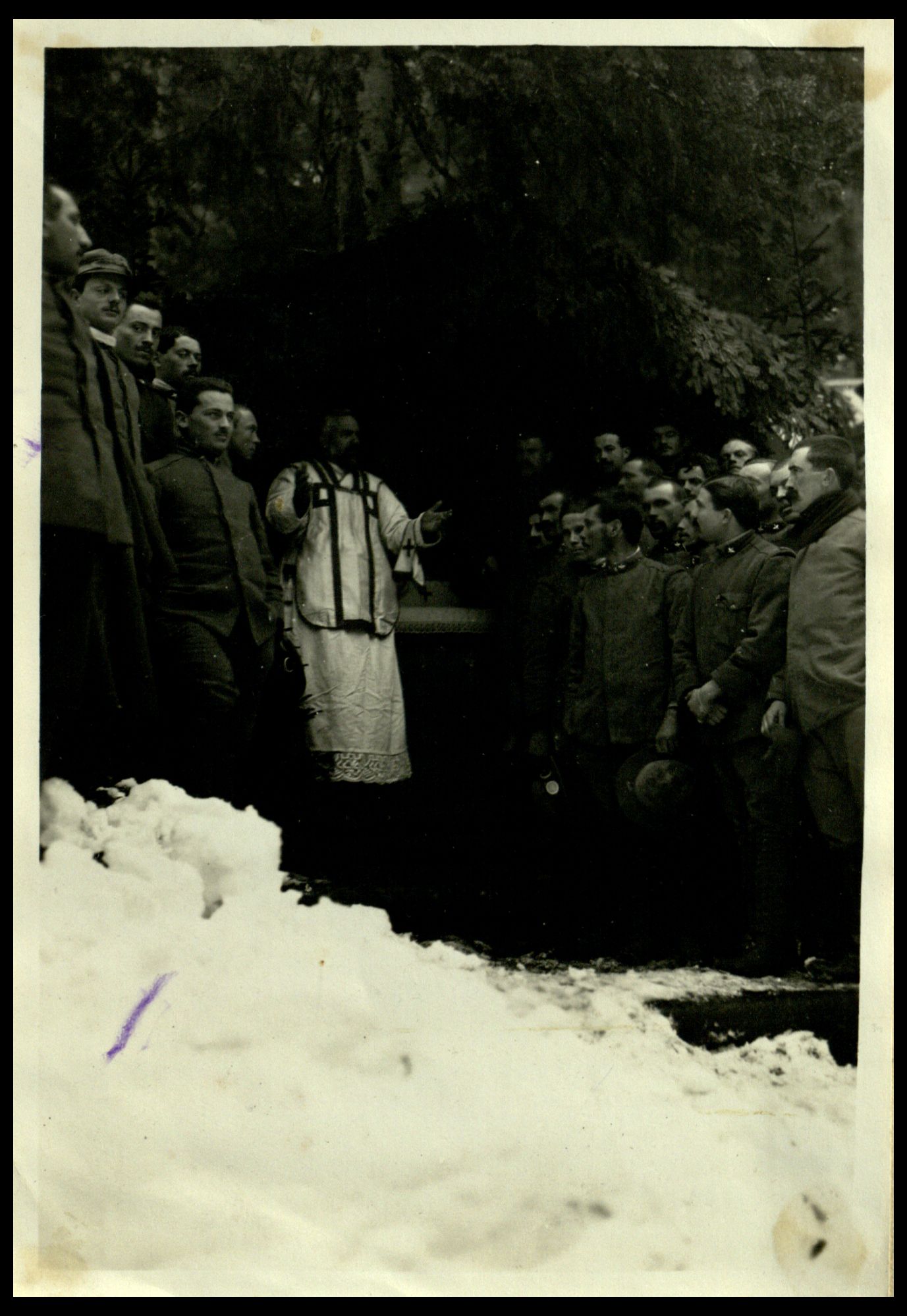 Padre Rubini parla ai soldati dell'8 Bersaglieri |