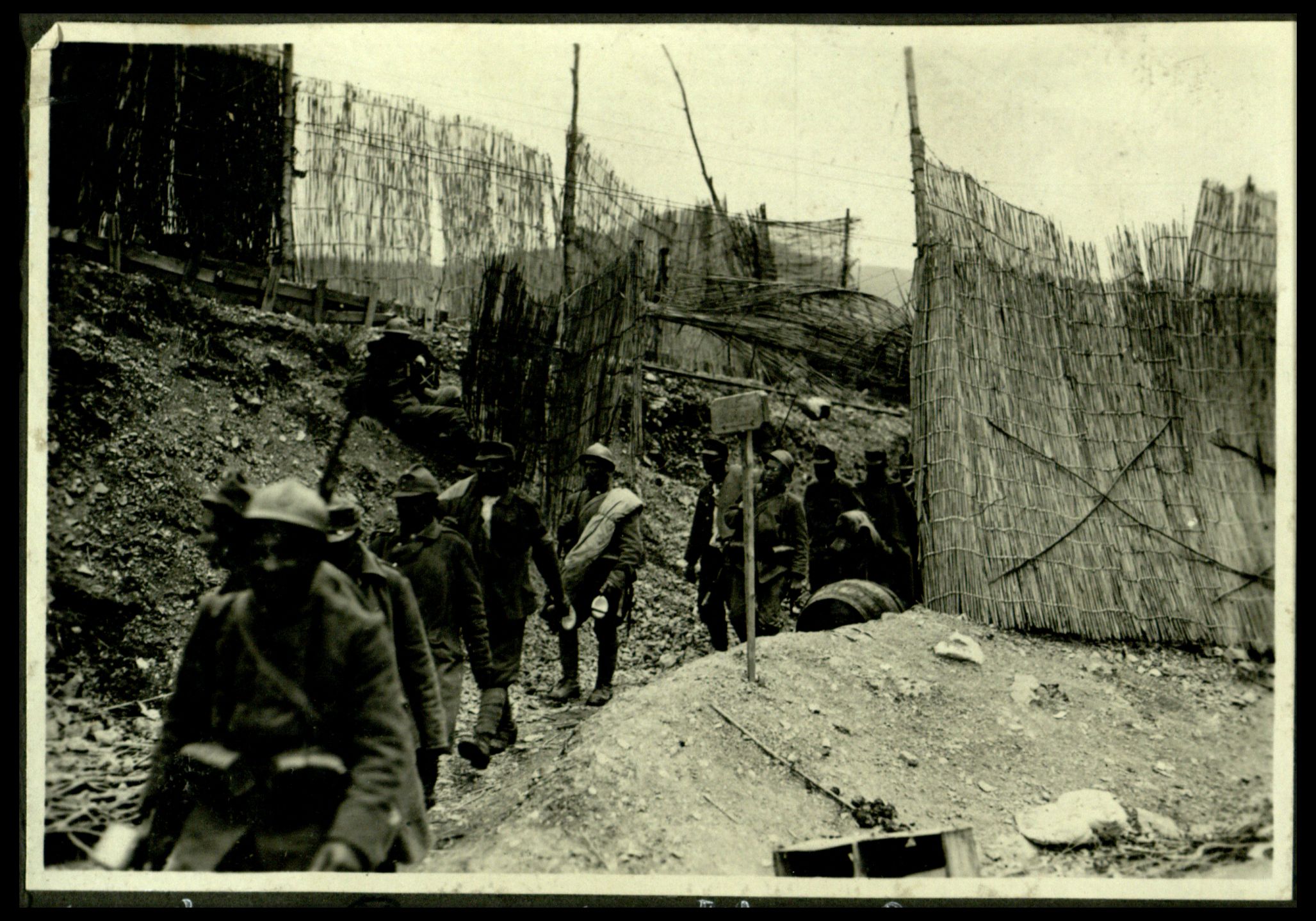 Allo sbocco dei camminamenti del Monte Cucco: primi prigionieri austriaci |