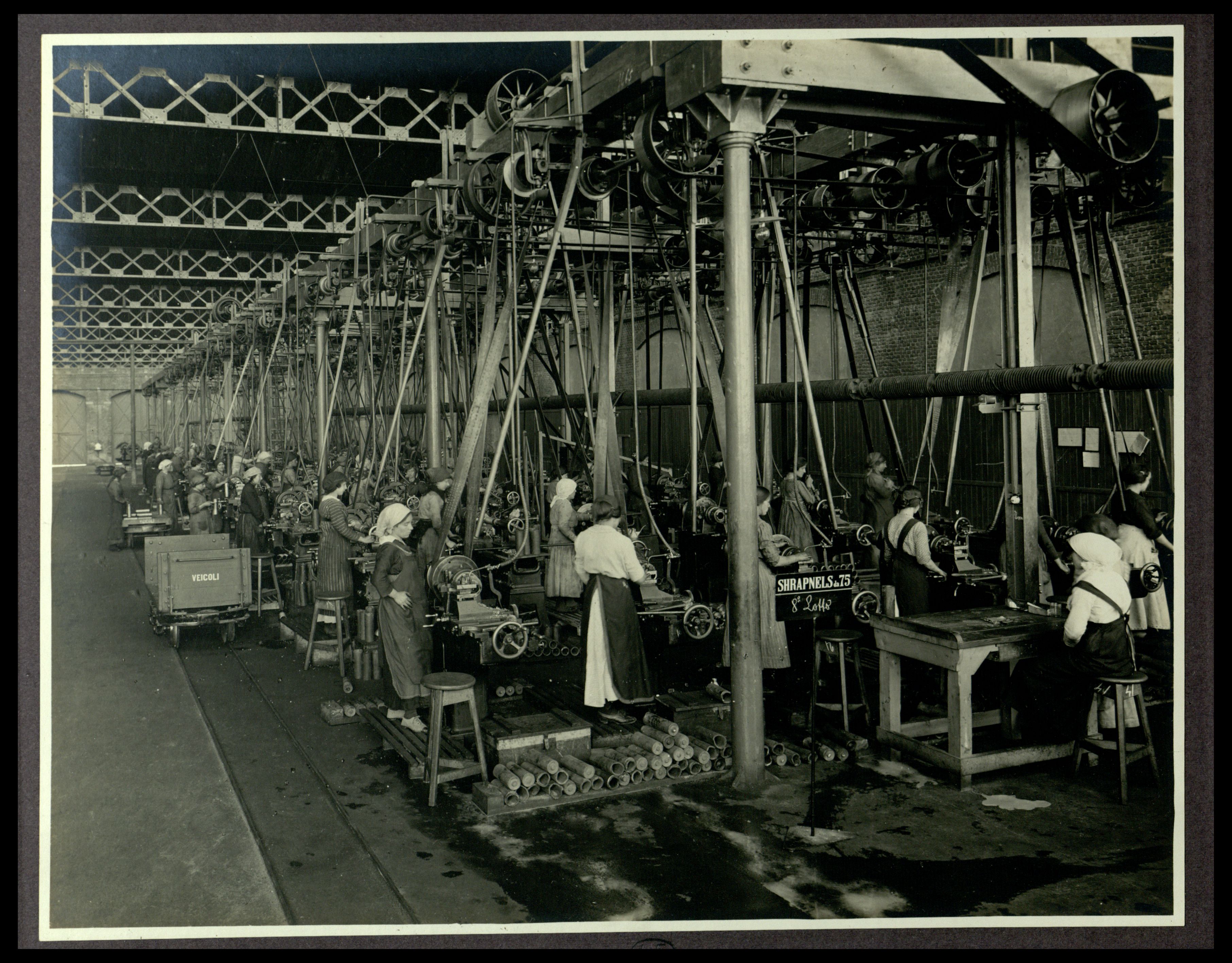 Veduta del riparto femminile della torneria. Lavorazione degli shrapnels da settantacinque millimetri |