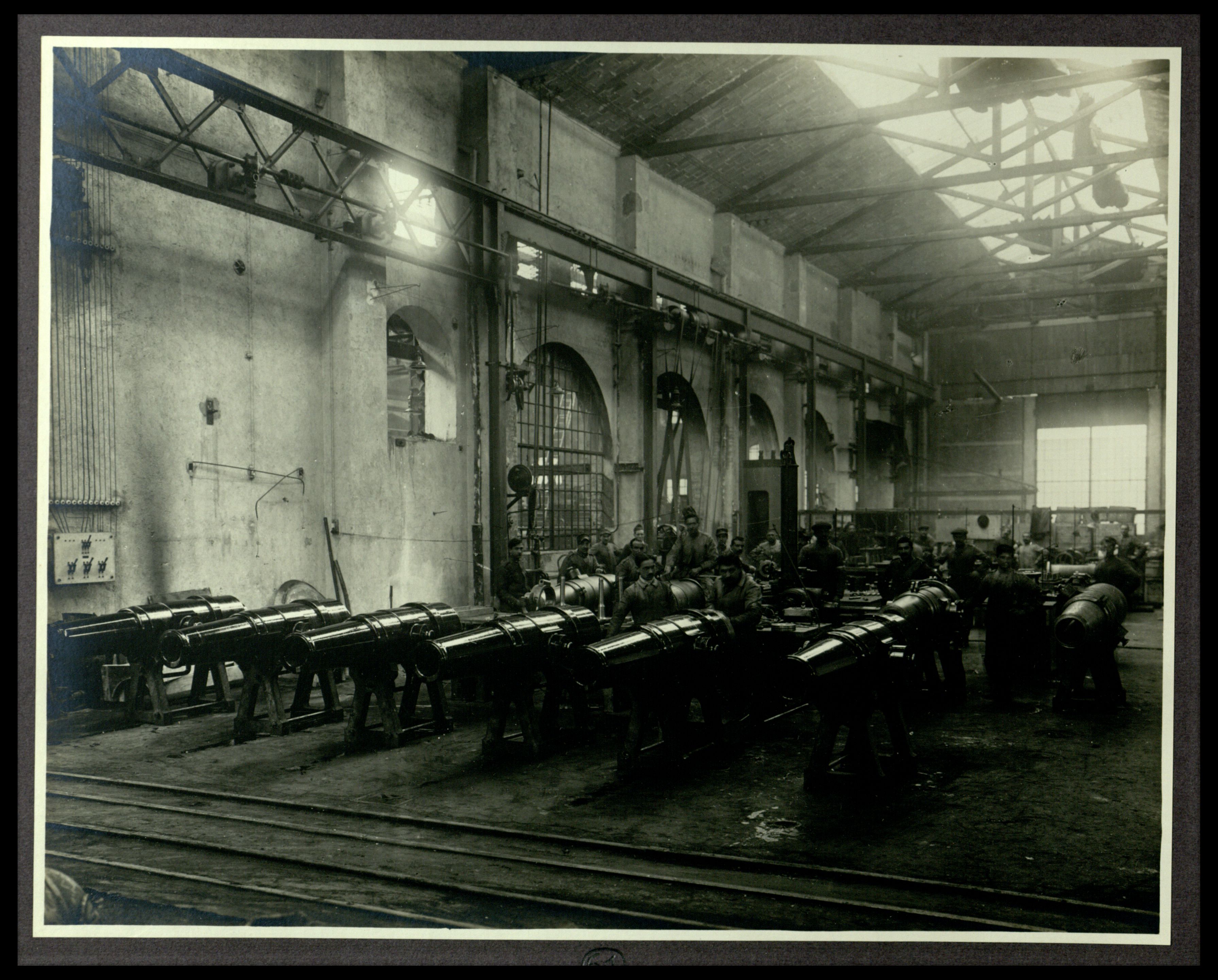Sala per l'aggiustaggio degli otturatori dei cannoni e per la montatura a caldo degli anelli |