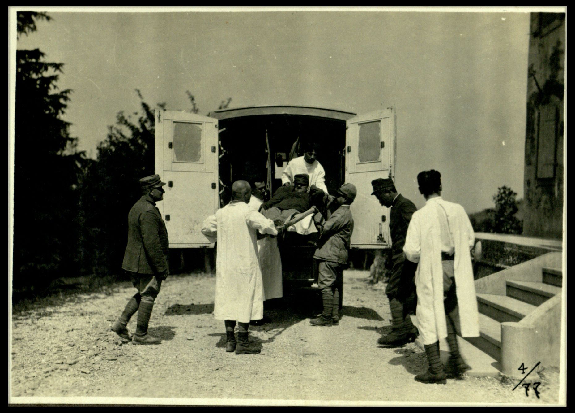 Ospedale Croce di Malta: l'arrivo dei feriti colle autoambulanze |