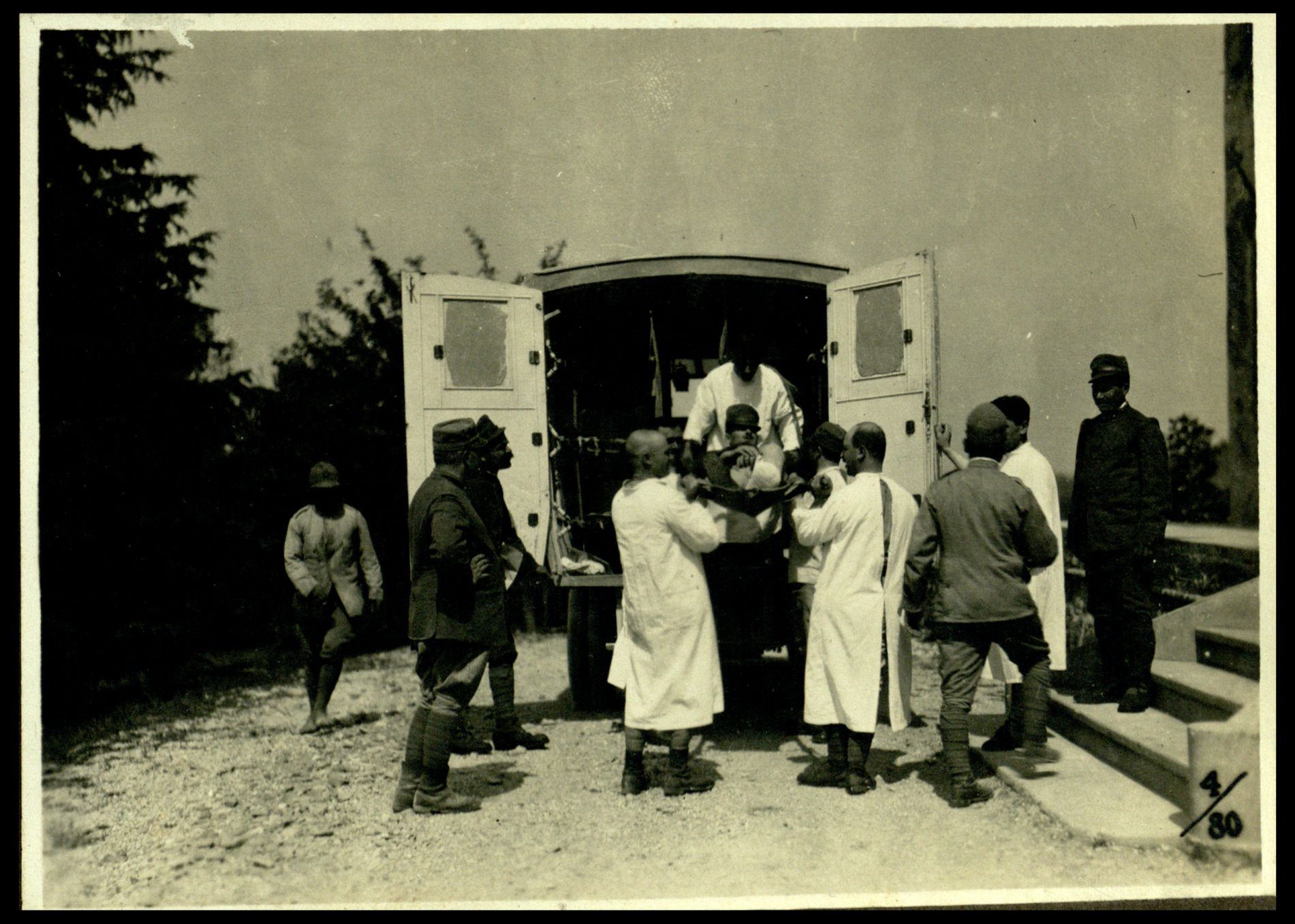 Ospedale Croce di Malta: l'arrivo dei feriti colle autoambulanze |